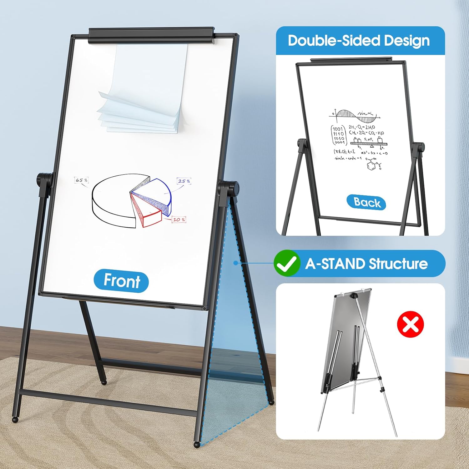 MaxGear Large White Board Easel Stand, 40" x 28" A-Stand Double Sided Magnetic Dry Erase Board with Height Adjustable and 360°Rotation, Portable Classroom Easel for School or Teaching at Home, Office