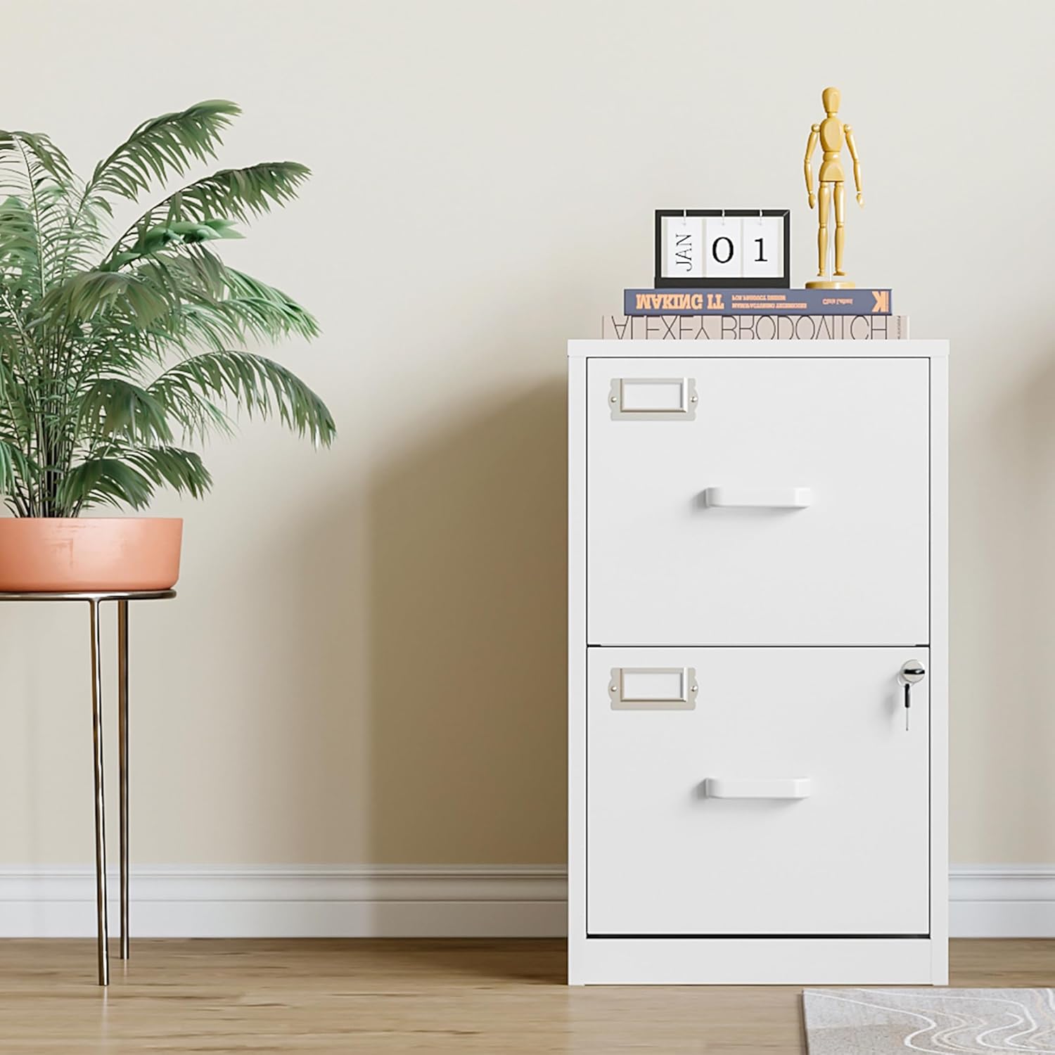 - ăWide ApplicabilityăThis locking file cabinet offers versatility and practicality for your storage needs. Ideal for office, home use, its modern and sophisticated appearance and perfect height match perfectly with the desk.