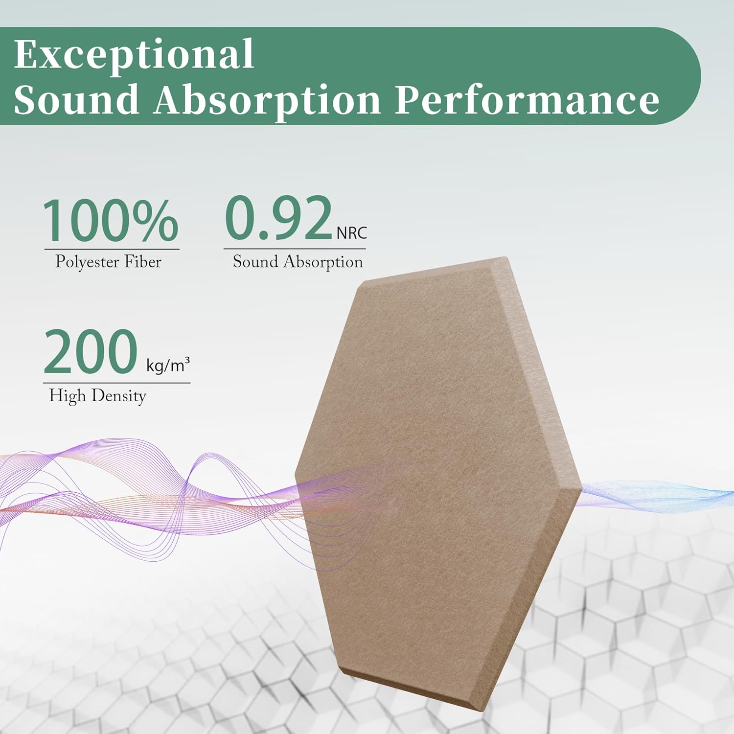 Hexagonal Acoustic Panels-18 Pack High-Density Sound Absorbing Panels 12"X10"X0.4" for Enhanced Noise Reduction, DIY Design, Idea for Studios, Offices, and Home Theaters(Dark Camel)
