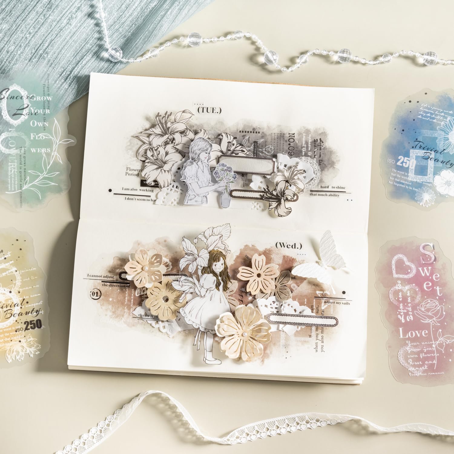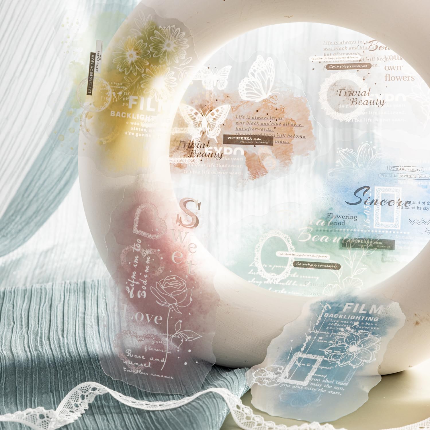 Lace PET Stickers, 60 PCS Vintage Ephemera for Scrapbooking, Journaling, Crafting, DIY Projects, and Art Supplies