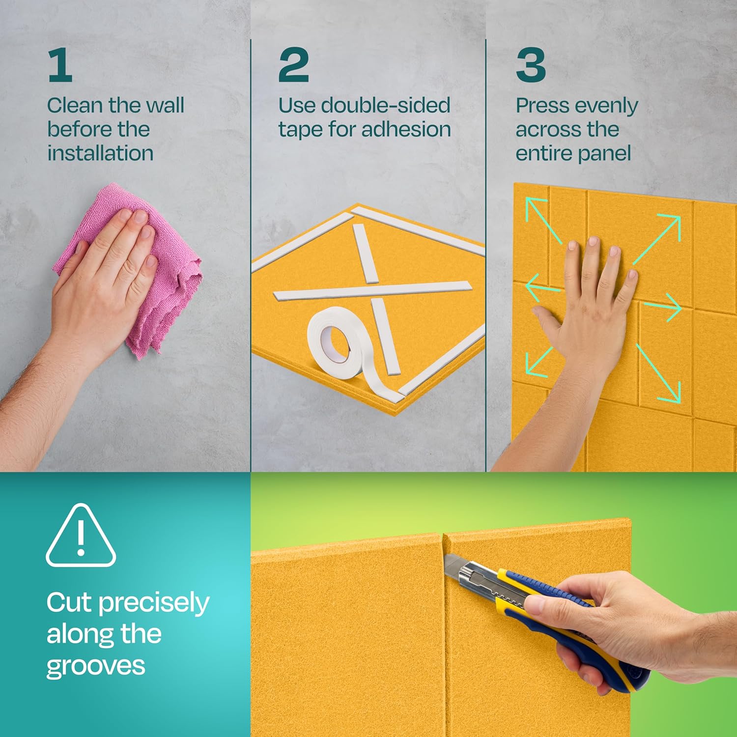 - [NO-FUSS SETUP]: Install these stunning sound proofing panels for walls in minutes with double-sided foam tape — it's that simple.