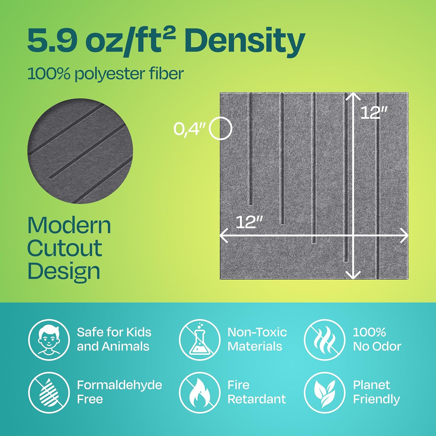 Acoustic Panels 12-Pack Soundproof Wall Panels 12"x12"x0.4" Decorative Sound Dampening for your Home, Office, Studio, Bedroom & More with Unique LineWave Carving [Pebble Gray]