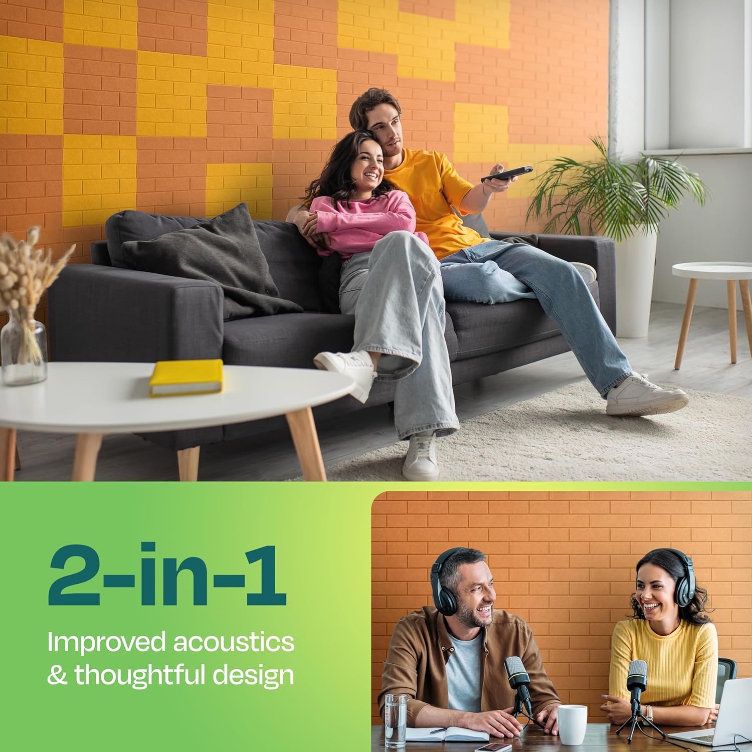- [MODERN BRICK DESIGN]: Our sound proof panels for walls feature a unique brick pattern that adds a modern touch to any room. Available in various colors, they help you design beautiful, noise-reducing spaces that elevate the look and functionality of your decor.