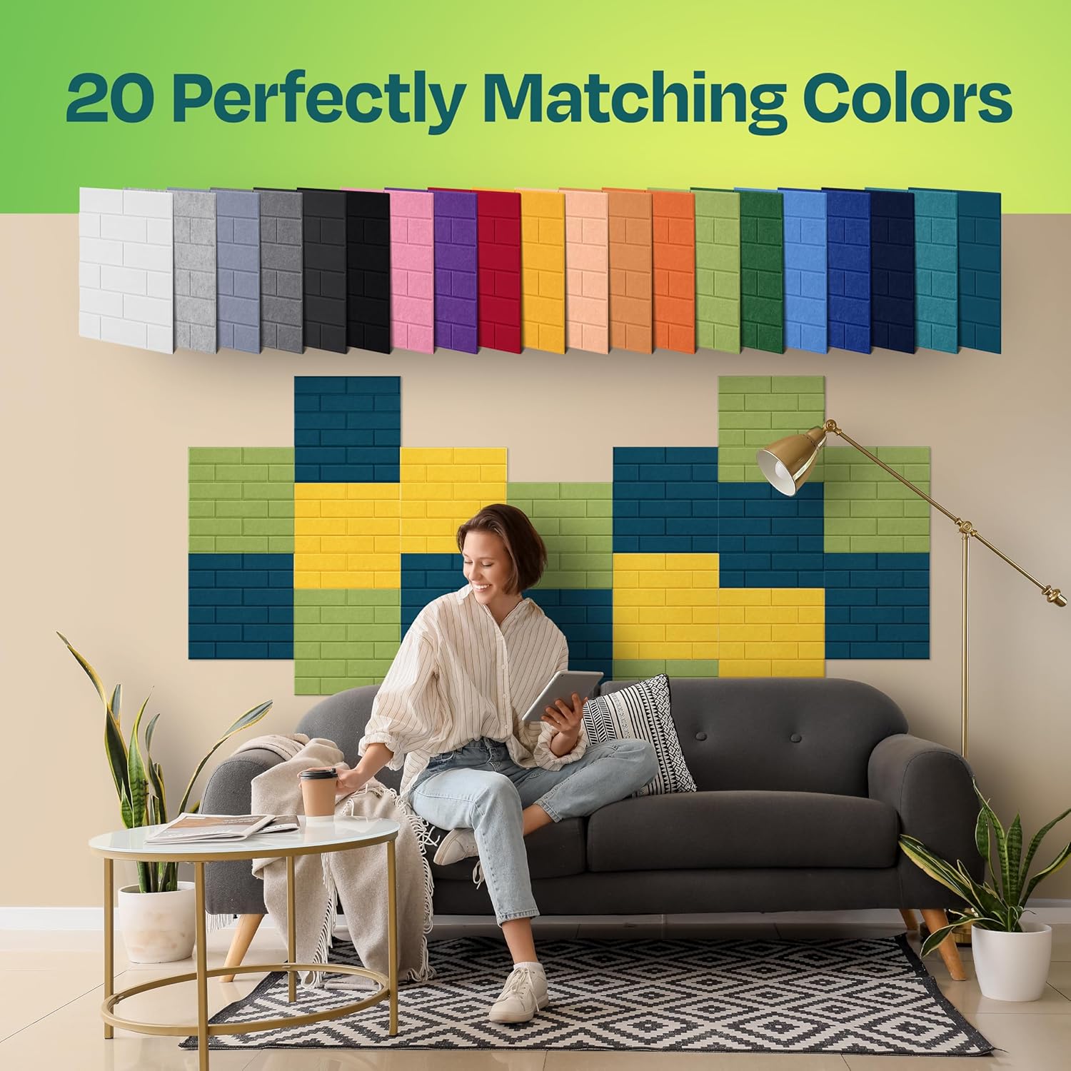 - [MODERN BRICK DESIGN]: Our sound proof panels for walls feature a unique brick pattern that adds a modern touch to any room. Available in various colors, they help you design beautiful, noise-reducing spaces that elevate the look and functionality of your decor.