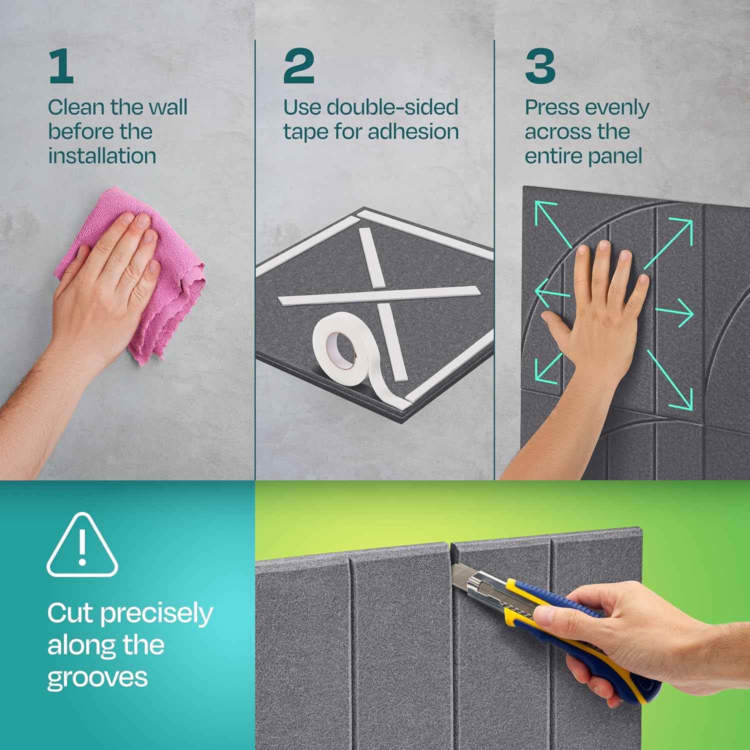 - [UNIQUELY CARVED ACOUSTIC PANELS WITH SOUND ABSORBING POWER]: Made from high-density 5.9oz/ft^2 (1800gr/m^2) material, these acoustic wall panels provide excellent noise absorption, reduce echoes and reverb, and create beautiful, geometric patterns.