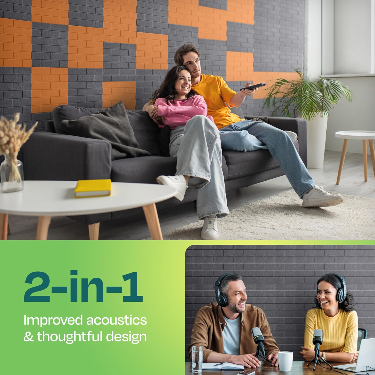 - [MODERN BRICK DESIGN]: Our sound proof panels for walls feature a unique brick pattern that adds a modern touch to any room. Available in various colors, they help you design beautiful, noise-reducing spaces that elevate the look and functionality of your decor.