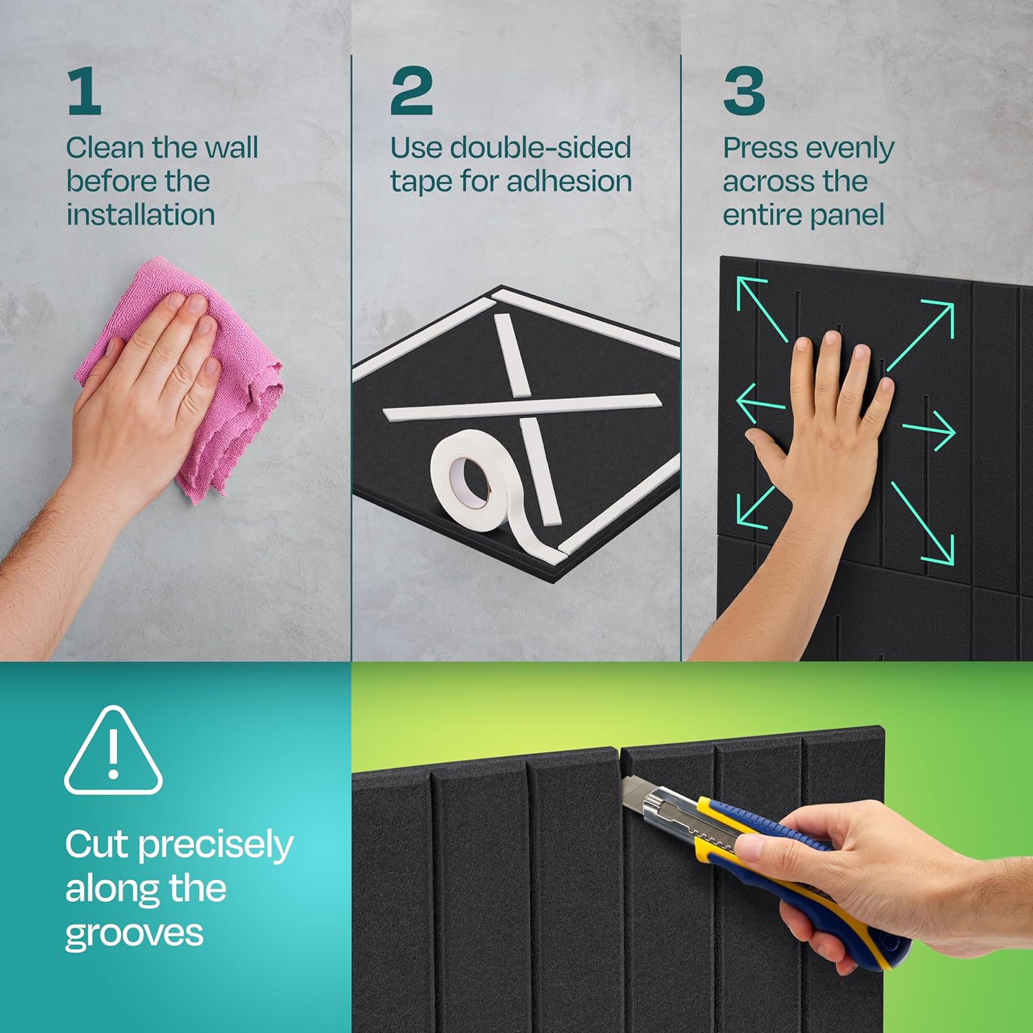 - [NO-FUSS SETUP]: Install these stunning sound proofing panels for walls in minutes with double-sided foam tape — it's that simple.