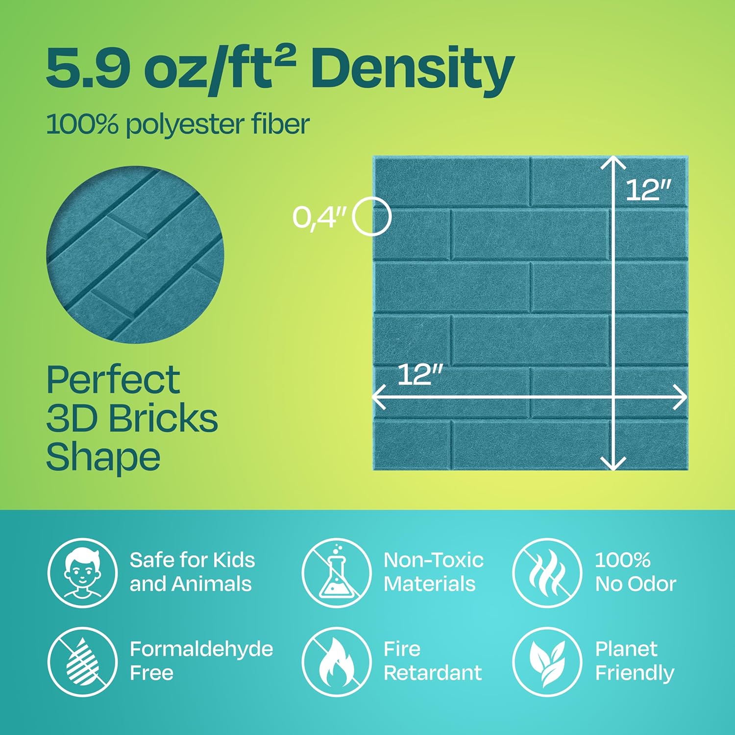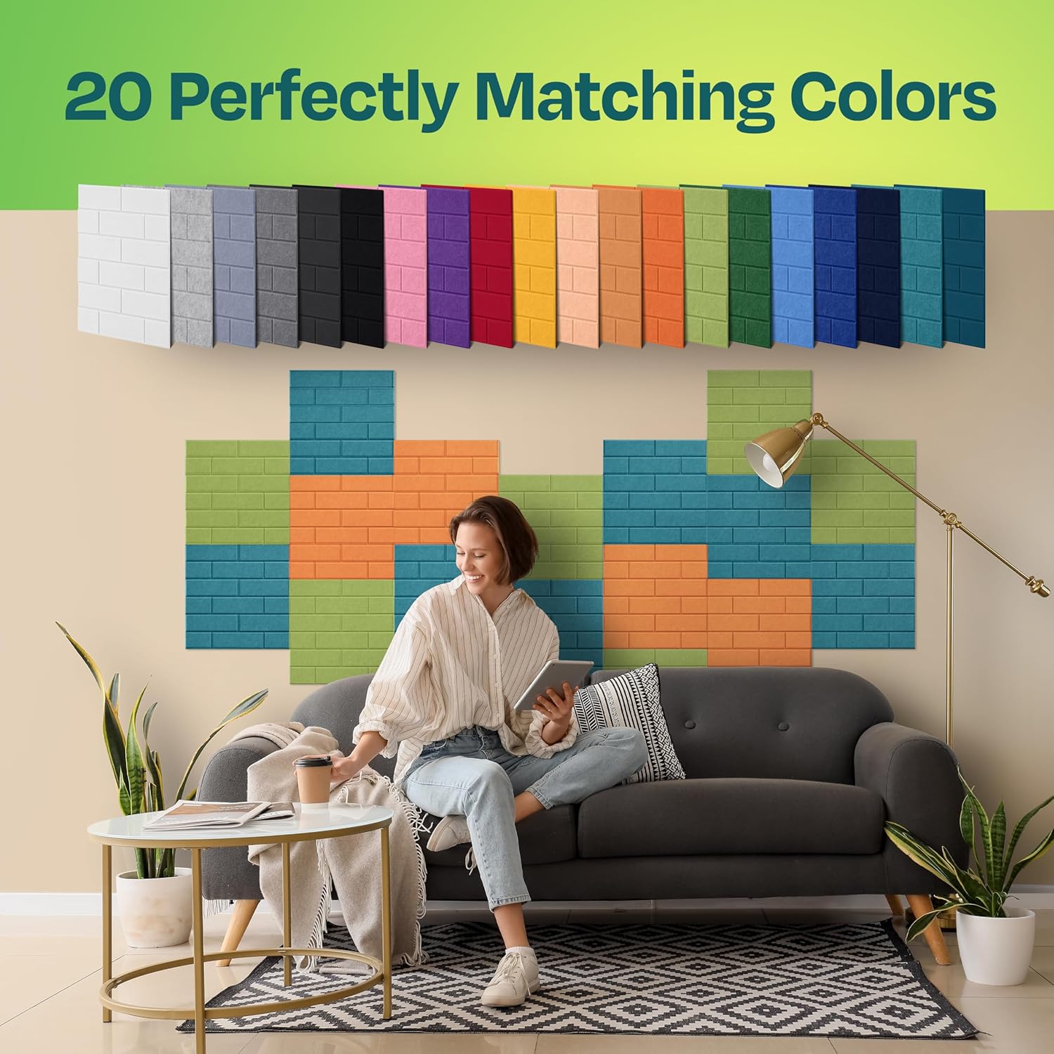 - [MODERN BRICK DESIGN]: Our sound proof panels for walls feature a unique brick pattern that adds a modern touch to any room. Available in various colors, they help you design beautiful, noise-reducing spaces that elevate the look and functionality of your decor.