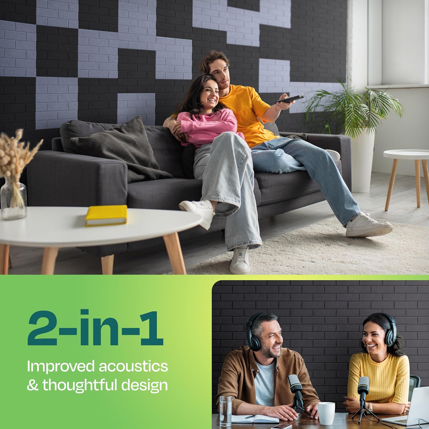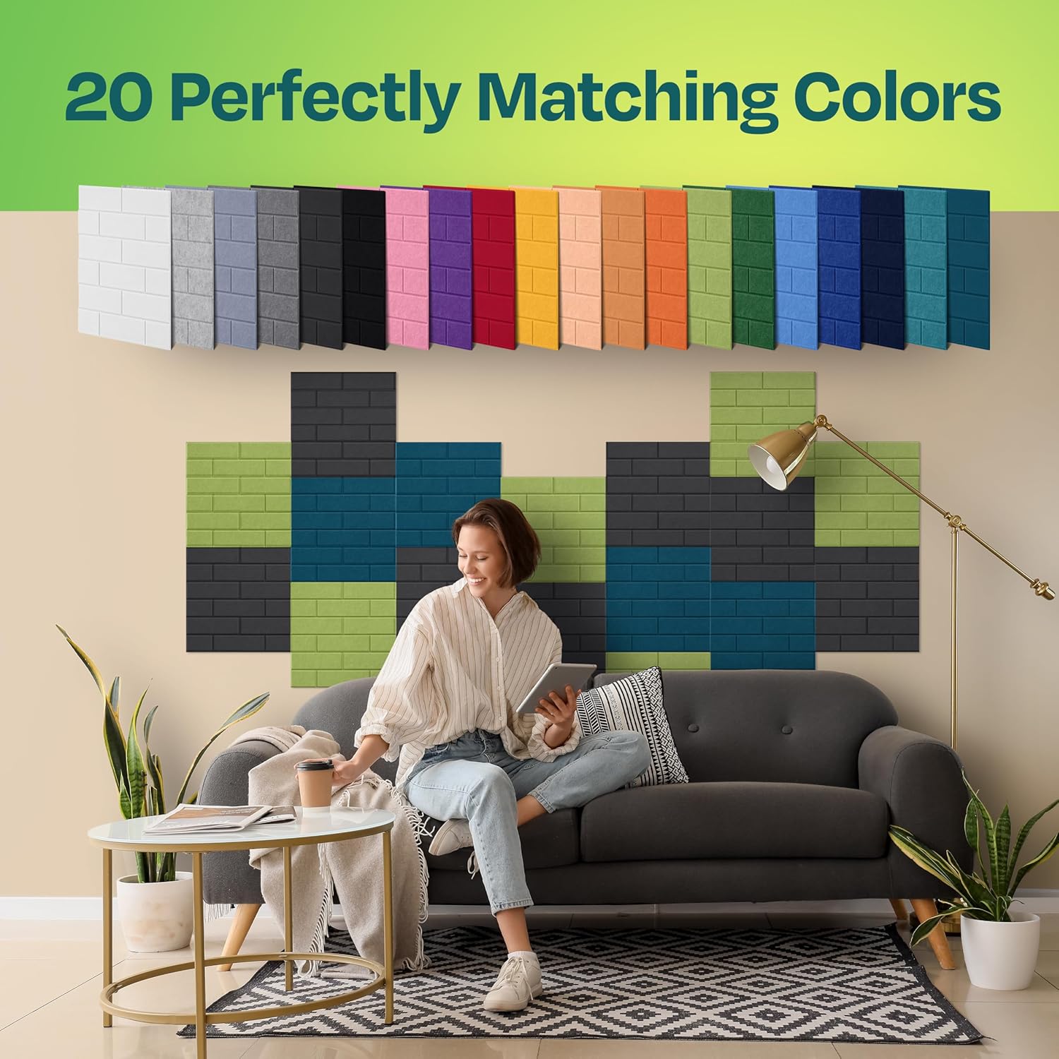 - [MODERN BRICK DESIGN]: Our sound proof panels for walls feature a unique brick pattern that adds a modern touch to any room. Available in various colors, they help you design beautiful, noise-reducing spaces that elevate the look and functionality of your decor.