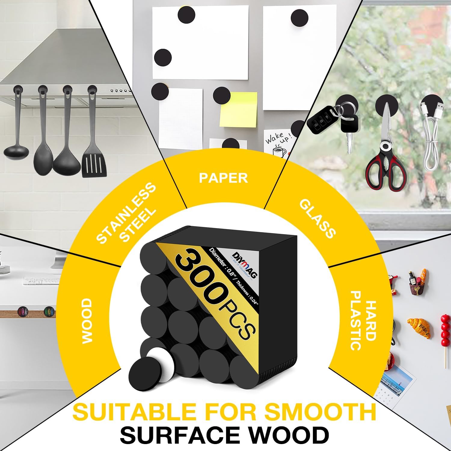 - 【Magnetic Dots Set】300 Pcs magnetic dots with adhesive backing.Each round magnet measures 0.8 x 0.04 inches (20x1 mm), one side is sticky and the other side is a flexible magnet. You can use it on non-metallic materials, allowing you to stick anything you want