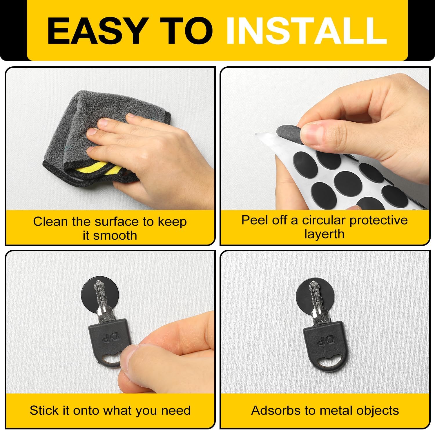 - 【Easy to Use】The small magnetic dot is easy to use and install, just peel off the round protective layer and stick it where you need it. It is easy to use and no cutting is required