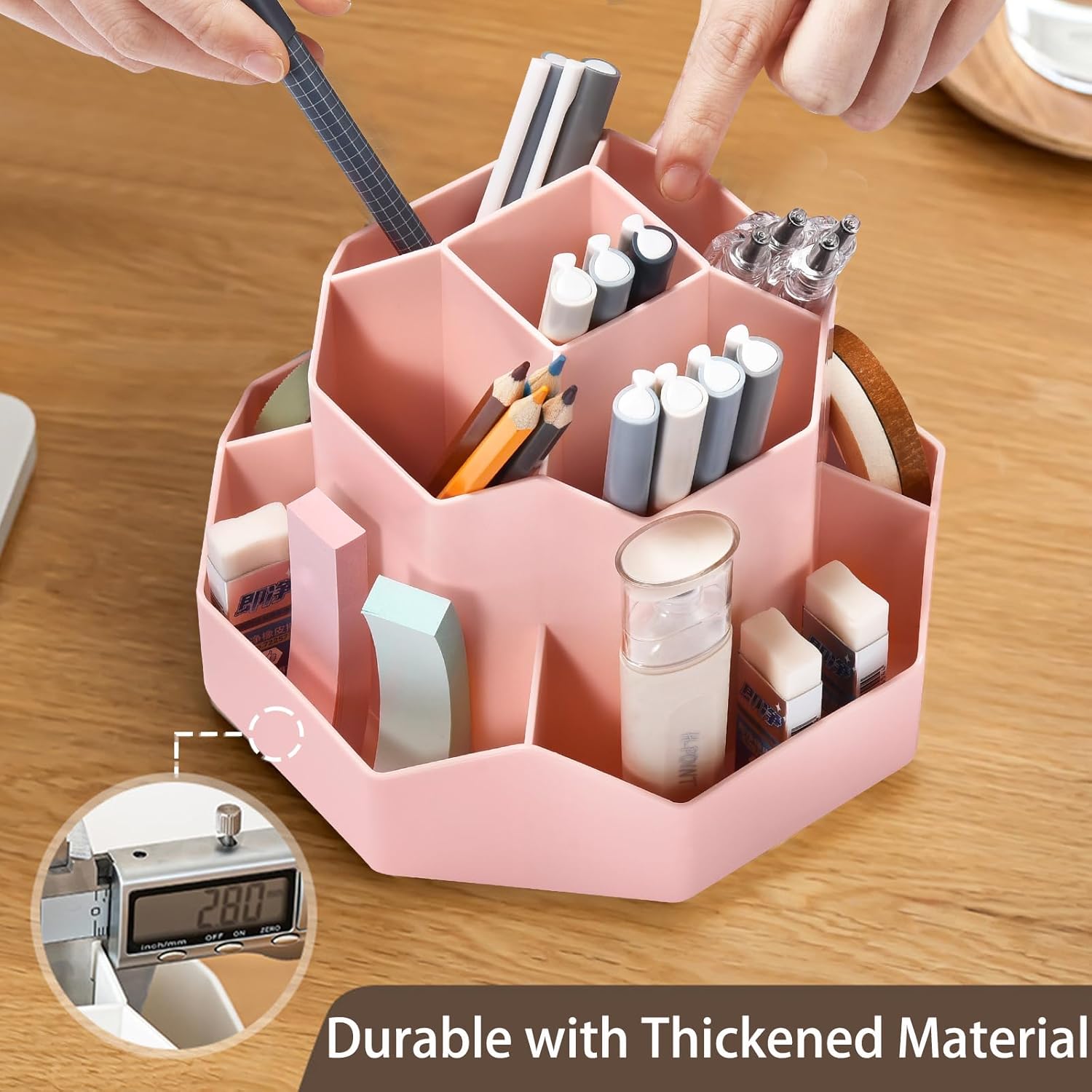 Pencil Pen Holder for Desk, 9 Slots 360 Degree Rotating Desk Organizer, Cute Pen Organizers Stationery Supplies for Office Home & Art Supply (Pink)