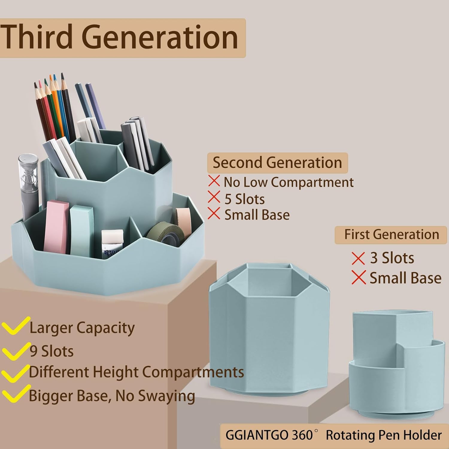- 【360 Degree Revolving Design】This pen organizer for desk can be turned up to 360-degree rotation. It spins smoothly all around without getting stuck. Easy to access, easy to get from any angle, always keep your desk tidy and organized.