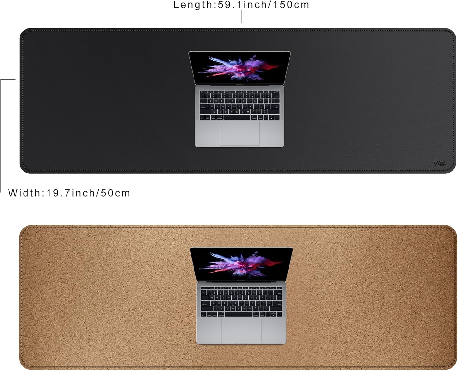 - ENHANCE YOUR WORK SPACE: Give your desk a new look with the stylish and durable VYAAA Cork Leather Desk Pad.The large size of 59 x 19.6 inches provides plenty of room for your mouse and keyboard, making it ideal for work or play.