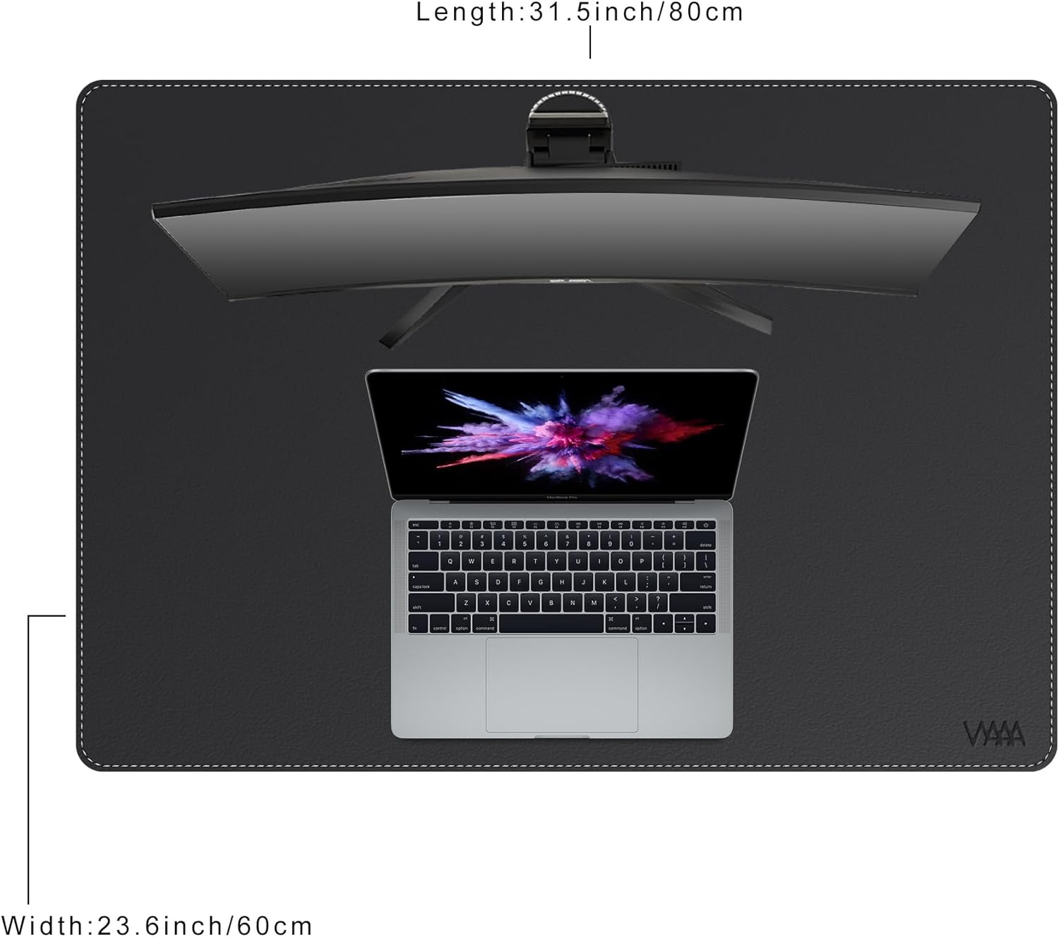 Vyaaa PU Leather Desk Mat, 31.4"×23.6" Office Desk pad, Large Mouse Pad, Desktop Protector for Desk, Multifunctional Keyboard Mouse Pad for Home or Office (Black)