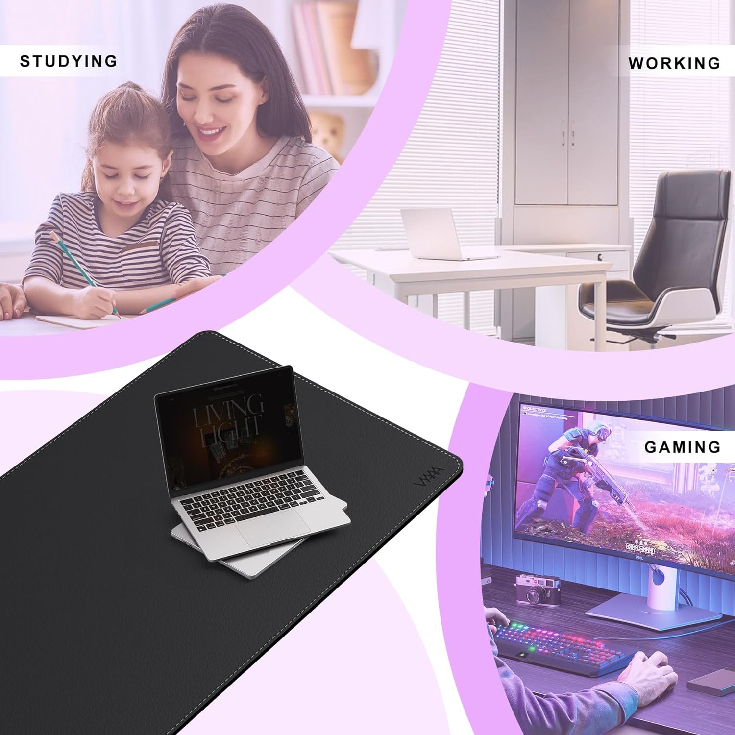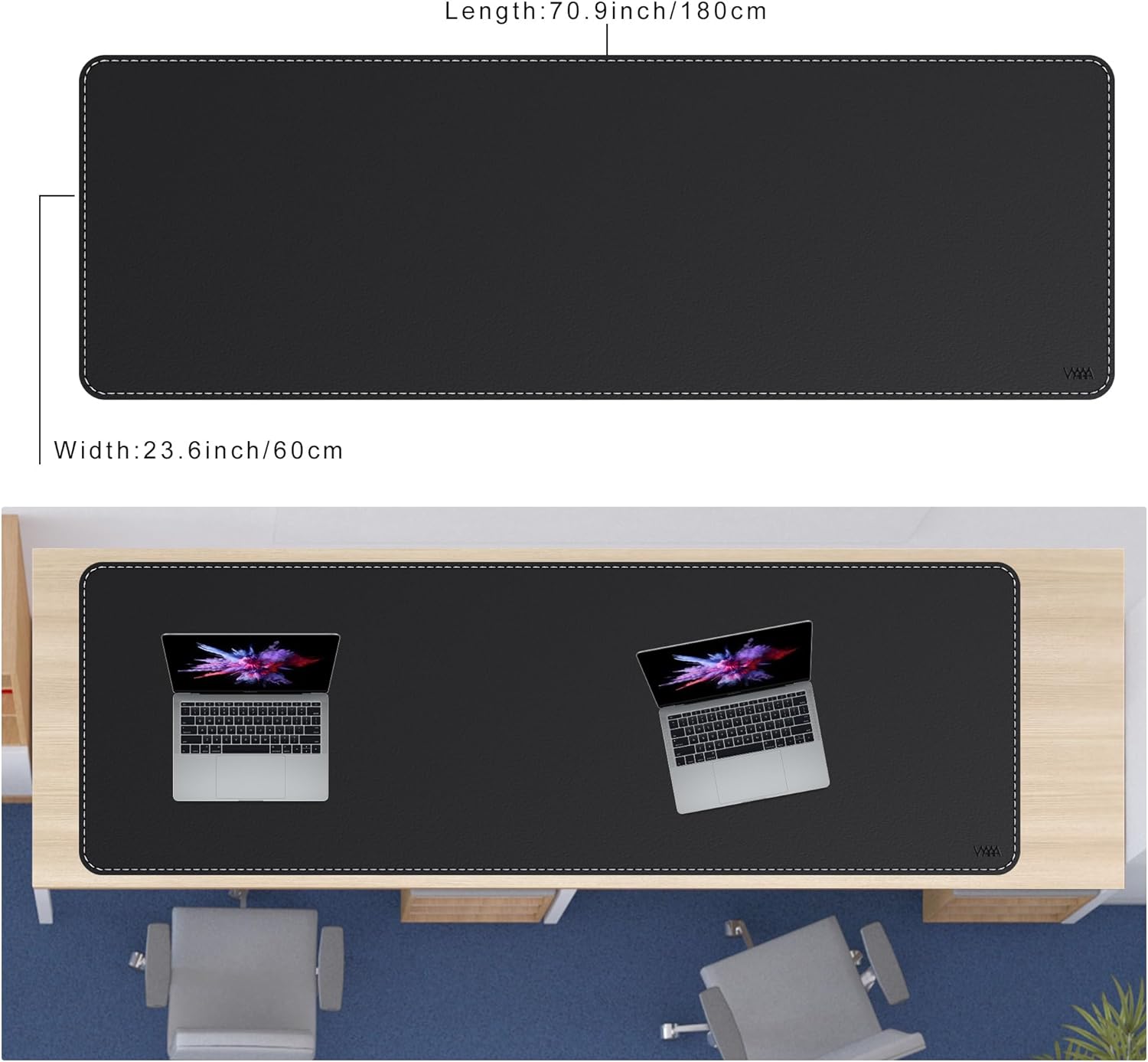 VYAAA Leather Desk Mat,70.8"×23.6" Large Mouse Pad, Desktop Protector for Desk, Multifunctional Keyboard Mouse Pad for Home or Office (Black)