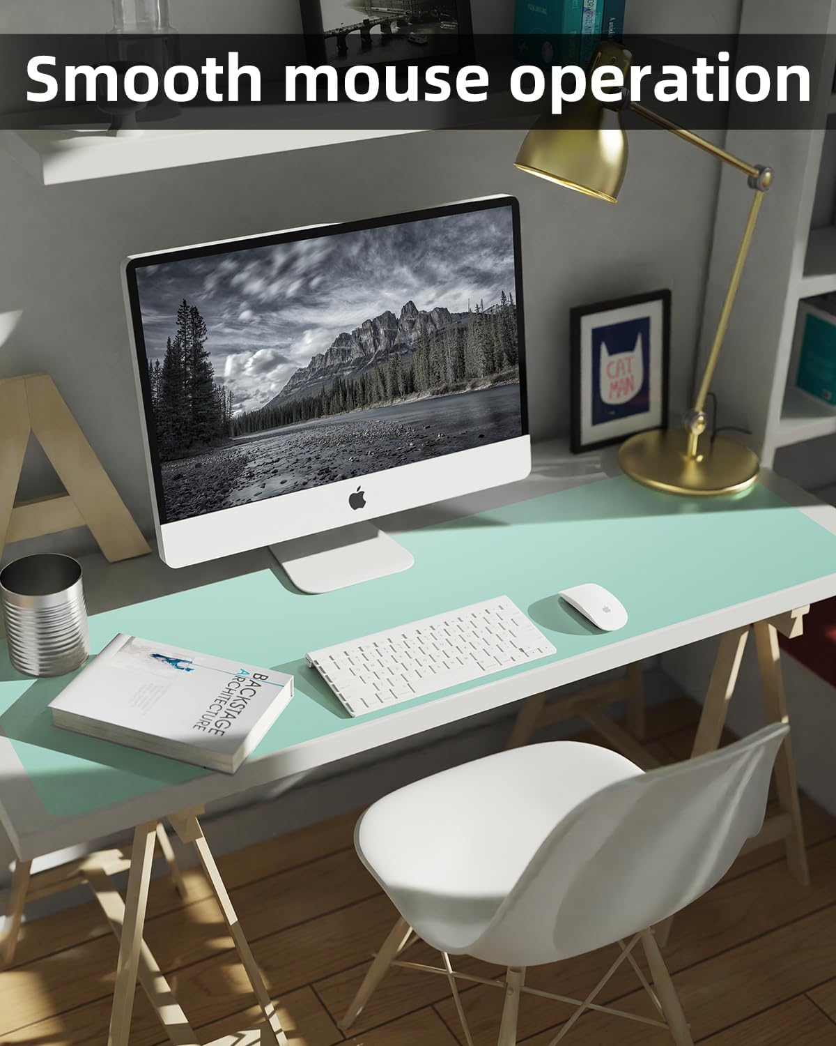 Leather Desk Pad Protector, Large Desk Mat, Mouse Pad, Non-Slip PU Leather Desk Blotter,Desk Cover mat,Desk mat for Keyboard and Mouse,Mat for Office&Home (Turquiose, 48" x 17")