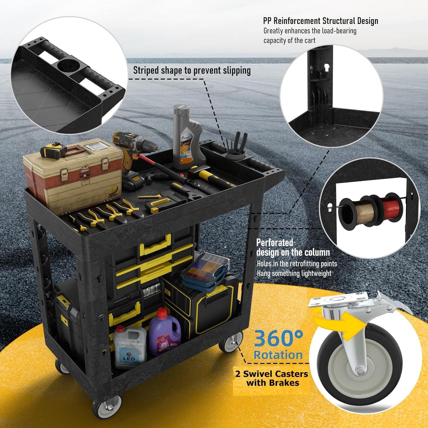 - ✨【HIGH-QUALITY MATERIALS】: This cart is made from high-strength, industrial-grade polypropylene to resist chipping or denting. It is also waterproof and rust-proof and easy to clean, so it is suitable for indoor and outdoor use.