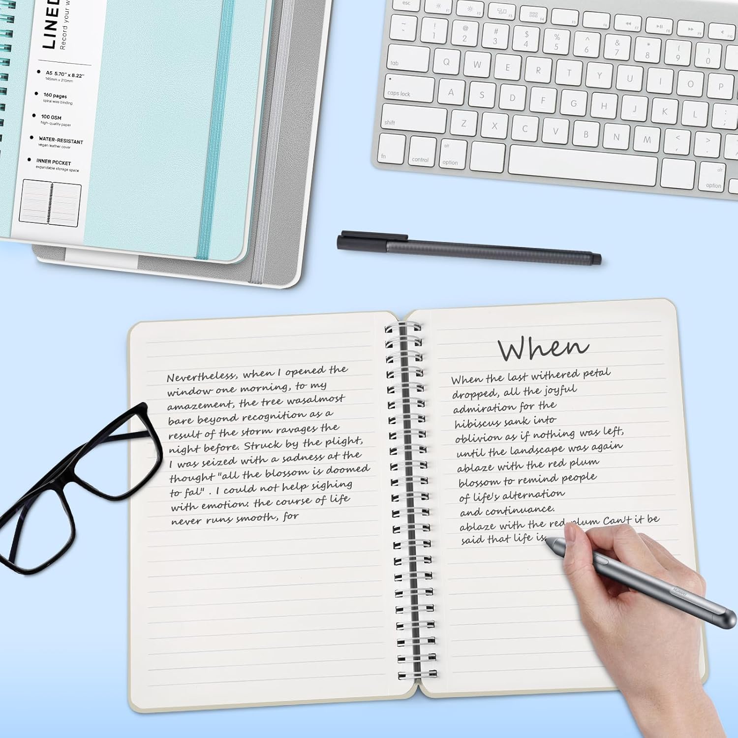 - Strong Spiral 180° Lay Flat Design - The 180° lay flat design makes writing easier, reading more convenient, and taking notes more efficient. At the same time, the hardcover notebook is designed with an elastic closure band to make it tightly closed to protect your content, and the inner paper will not be curled and kept flat. Our notebooks have perforated lines on every inside page to tear off paper easily.