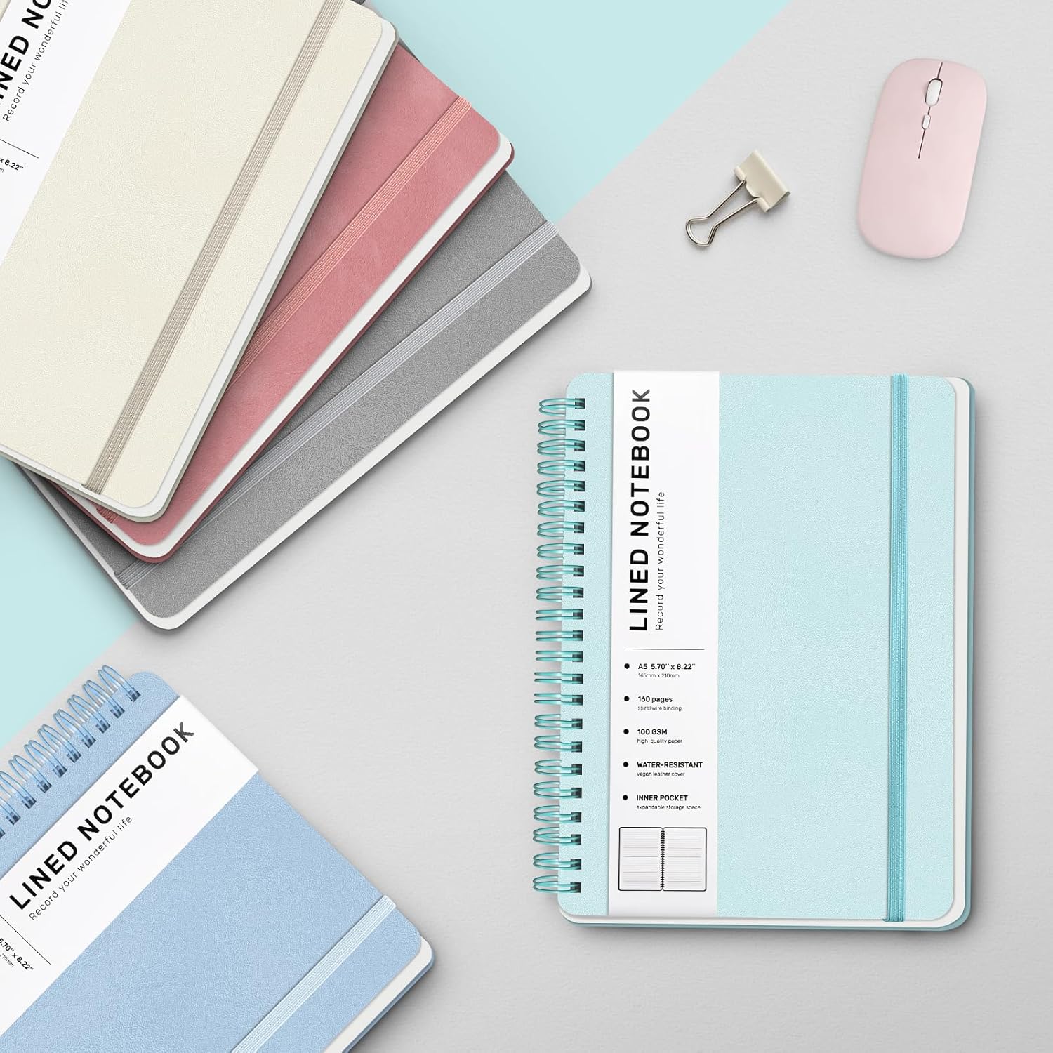 - 160 Pages A5 Notebook - This medium 5.7 x 8.2 inches A5 lined journal notebook features a waterproof pink faux leather cover, 8mm space classic college ruled notebook, total of 160 pages. The professional durable water-resistant plastic hard cover will protect your notebooks, which have oil-resistant and anti-bending properties, effectively protecting the internal paper of the journal and providing a comfortable writing surface.