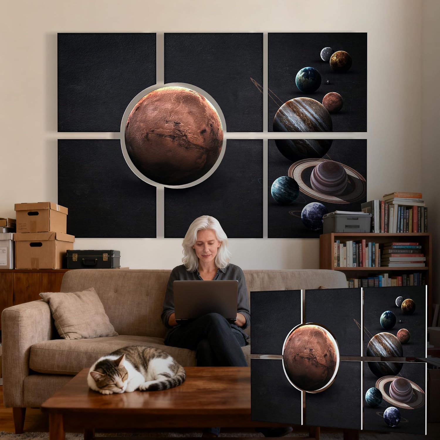 BUBOS 7 Pack Art Acoustic Panels Soundproof Wall Panel,70.8X47.2 Inches Large Sound Absorbing Panel,Self-adhesive Decorative Acoustical Wall Panels, Acoustic Treatment for Home Office(Mars)