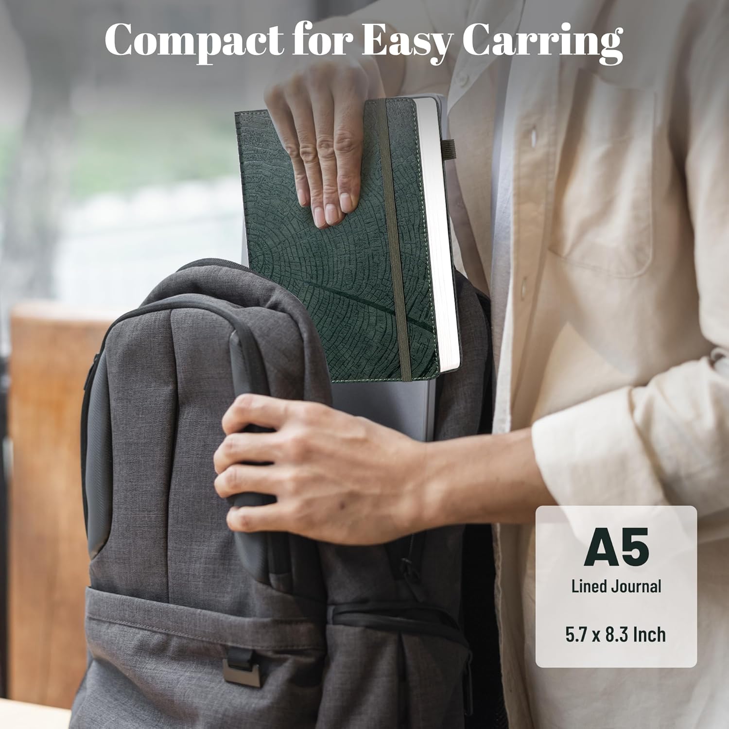 - ššš šš§ ššššš”šš« ššØš®š§š ššØš®š«š§šš„:The cover features a tree growth ring pattern, lightly debossed onto cruelty-free vegan leather. The textured cover adds visual interest and sets it apart from plain designs. The tree ring pattern represents personal growth, accomplishments, and the challenges along the way. 5.7 Ć 8.3 inches, compact and easy to carry