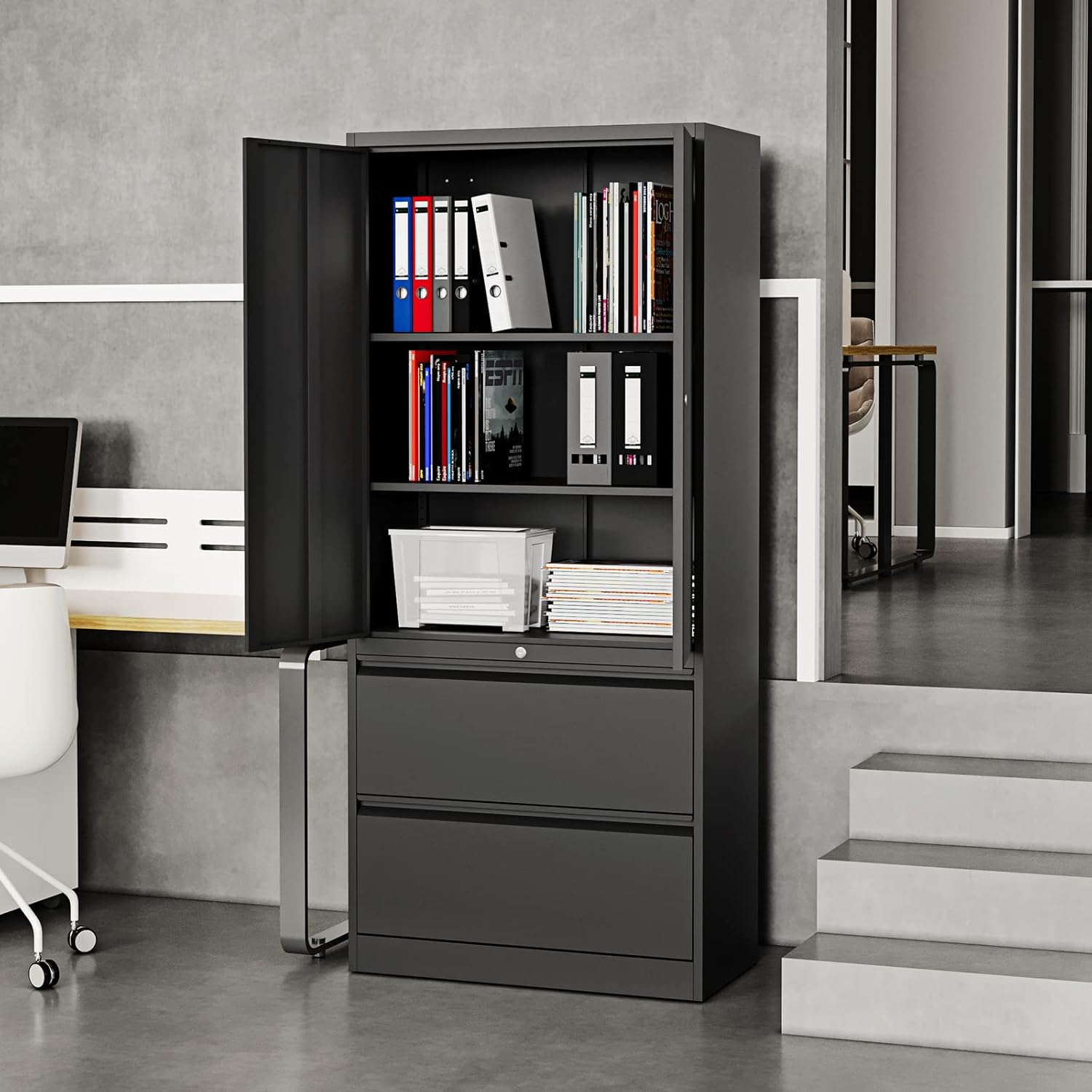 - MULTI-FUNCTIONAL AND DURABLE - The whole cabinet is all made of metal, and the metal shelves above the cabinet can bear about 180 pounds of weight; The metal drawer below can hold about 110 pounds.You can put it in different places such as office, living room, garage, warehouse, etc. It can completely meet your needs.