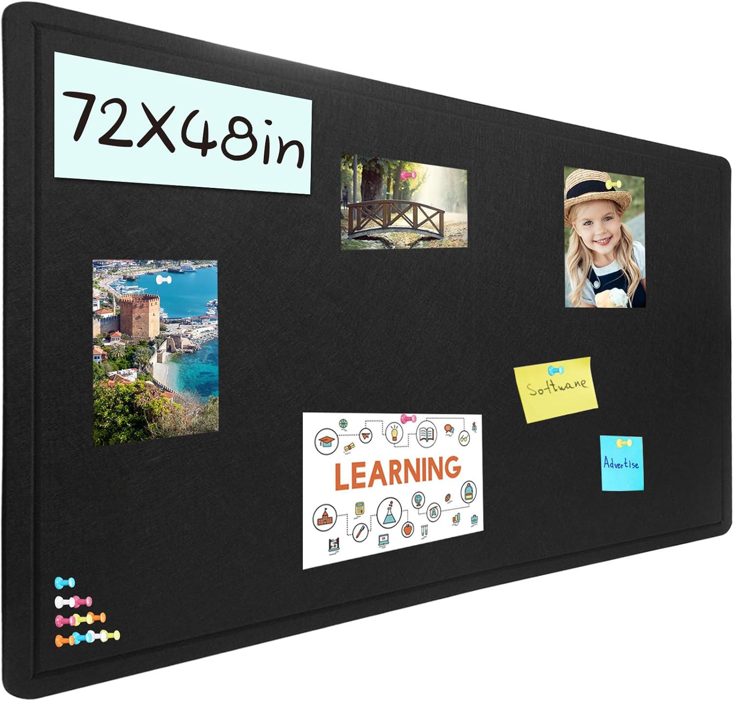 Large Bulletin Board - 72 X 48 inches Cork Board with 30 Pushpin, 6' x 4' Felt Cork Board Notice Pin Board, Self-Adhesive Vision Board Mood Board Foldable Photo Board for Wall (Black)