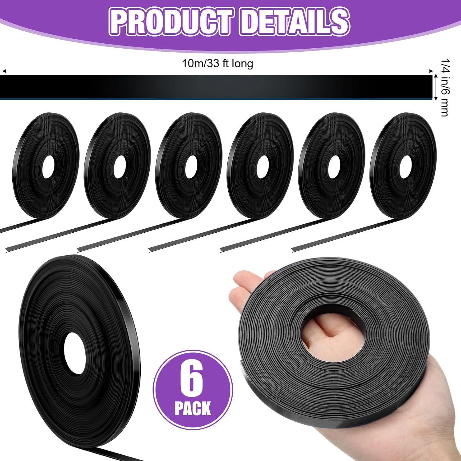 6 Rolls Magnetic Tape Roll Thin Strips, 33 ft Magnetic Whiteboard Graphic Decorative Tape Marking Line Magnet Board Dividers for Classroom Office Art Accessories(Black,0.24 Inch)