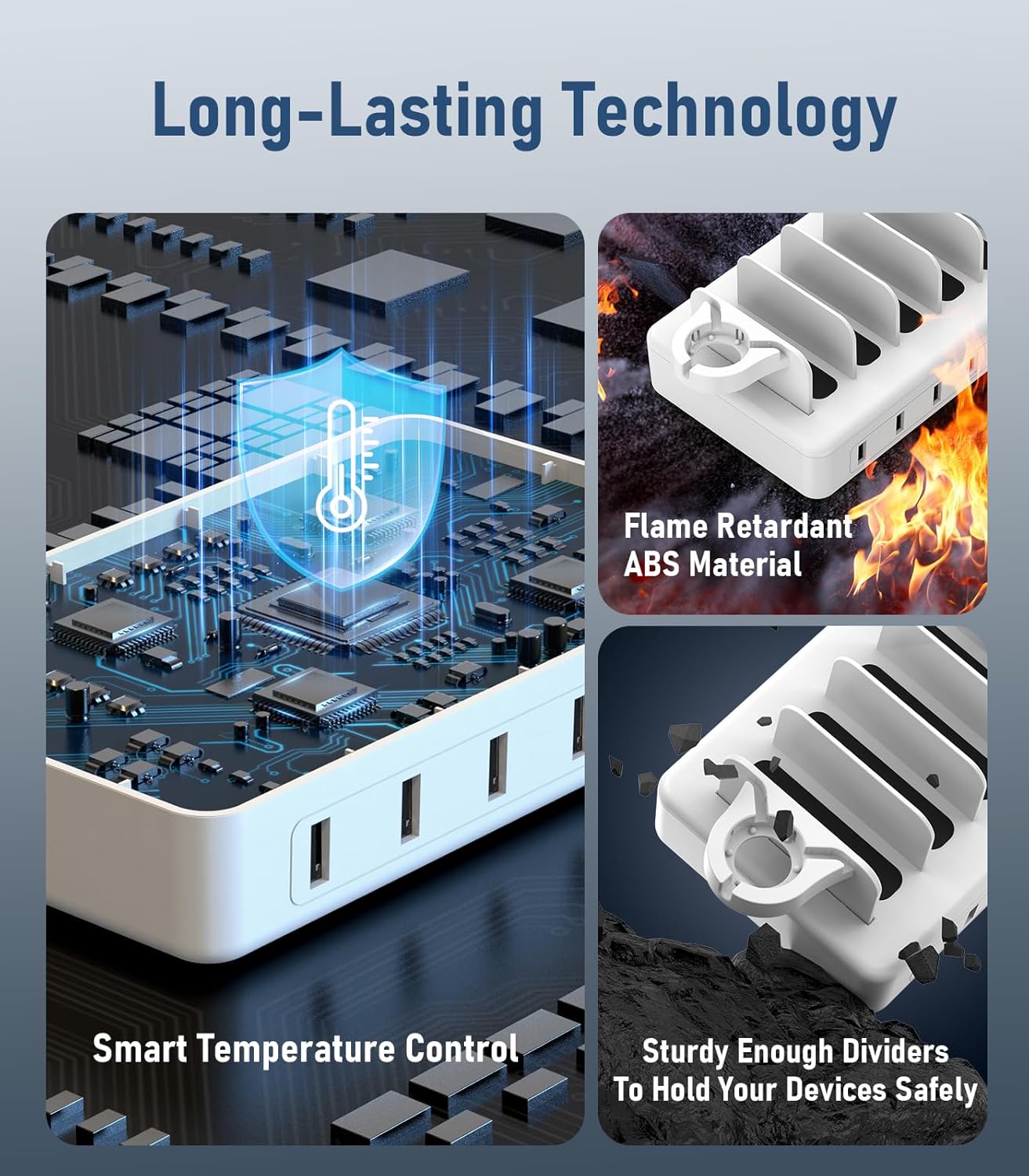 - ăIntelligent Device ProtectionăOur charging station for multiple devices apple has real-time temperature monitoring technology. It automatically cuts off the power supply when the temperature is too high to prevent short circuit.This apple charging station also has overheating and overcharging protection to maximize protection
