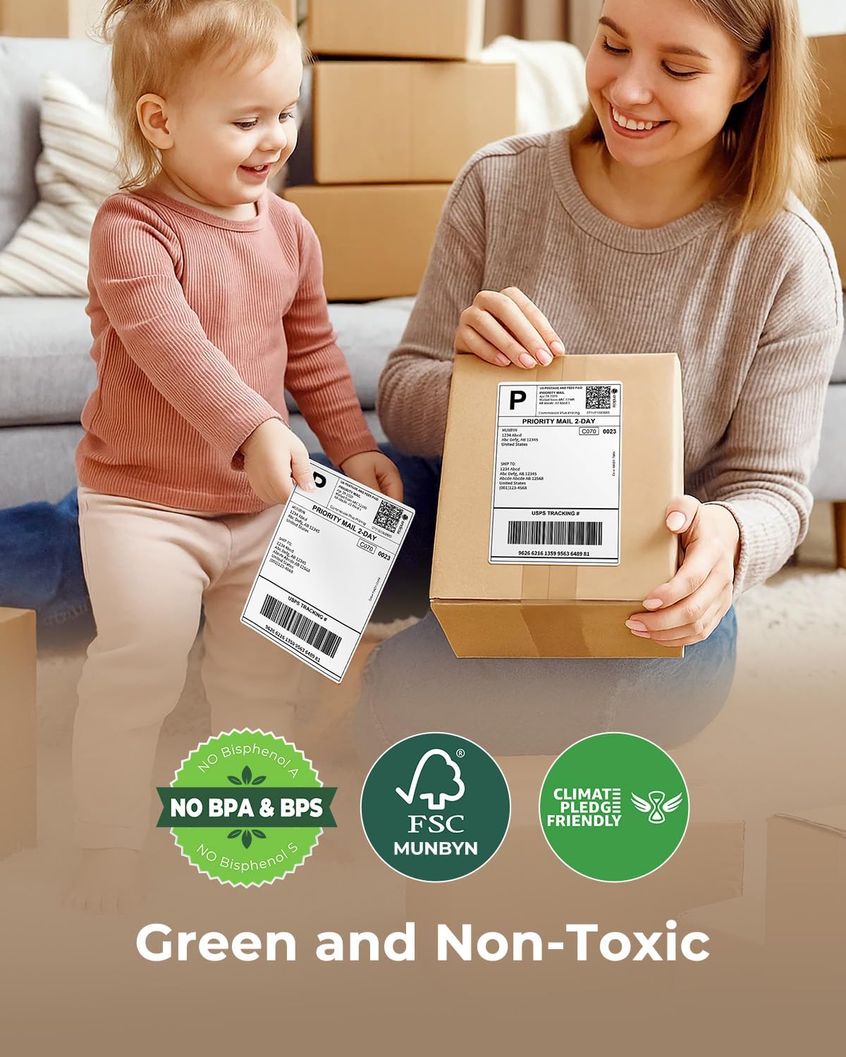 - Sustainable and Cost-Effective Shipping Labels: Boost your business with MUNBYN inkless labels. Without Bpa or Bps, these labels are FSC-certified and Climate Pledge-friendly. They ensure high quality, reduce waste, and save costs with fewer misprints. These durable labels resist water, grease, and scratches
