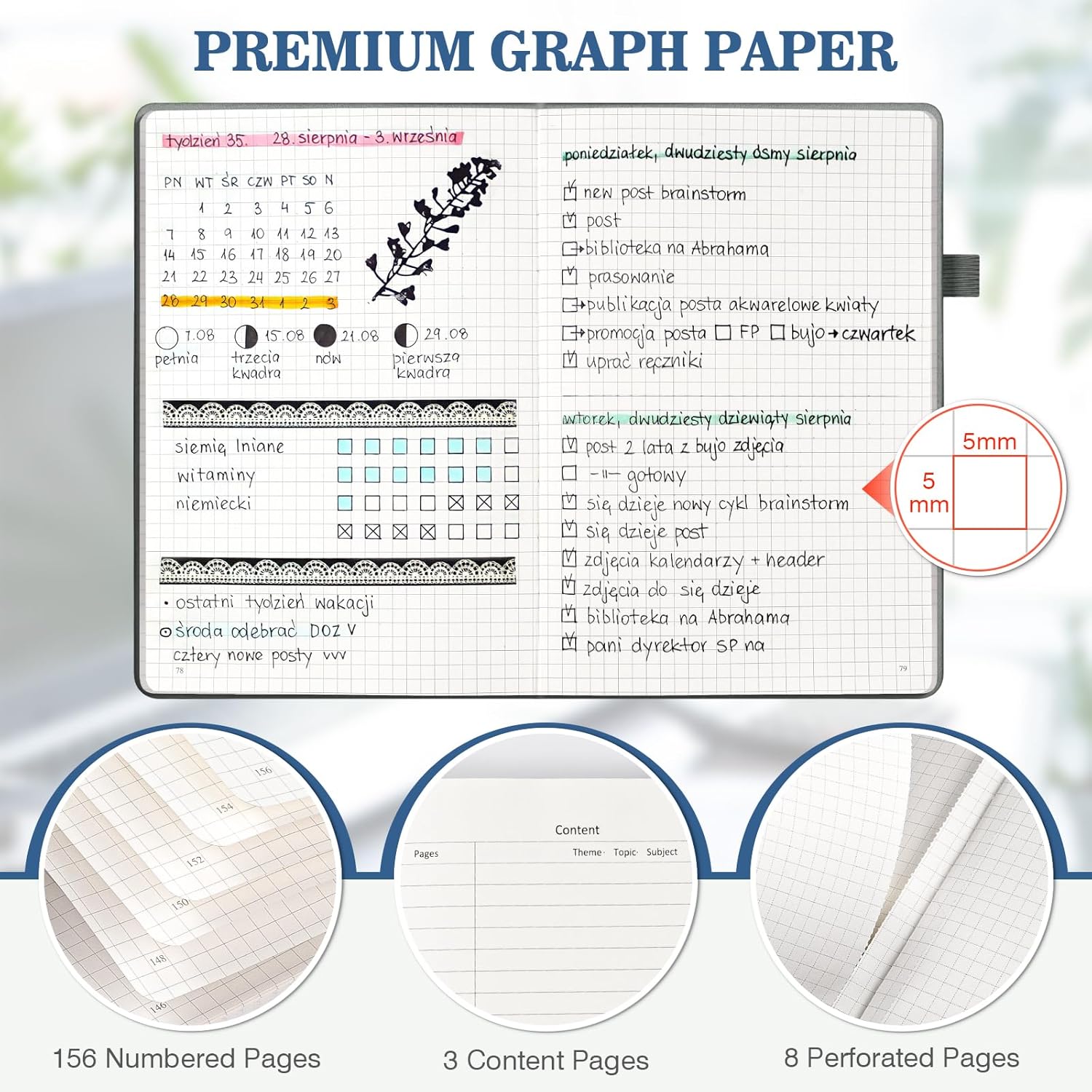 - 【120 GSM Thick Paper & Numbered Pages】These writing journals stand out for their 120gsm thick paper, compatible with a variety of pens, ensuring a smooth writing experience without any ink bleed-through. Each a5 notebook includes 3 index pages and 156 numbered pages for easy organization, along with 8 perforated pages for convenient tear-outs or quick notes.