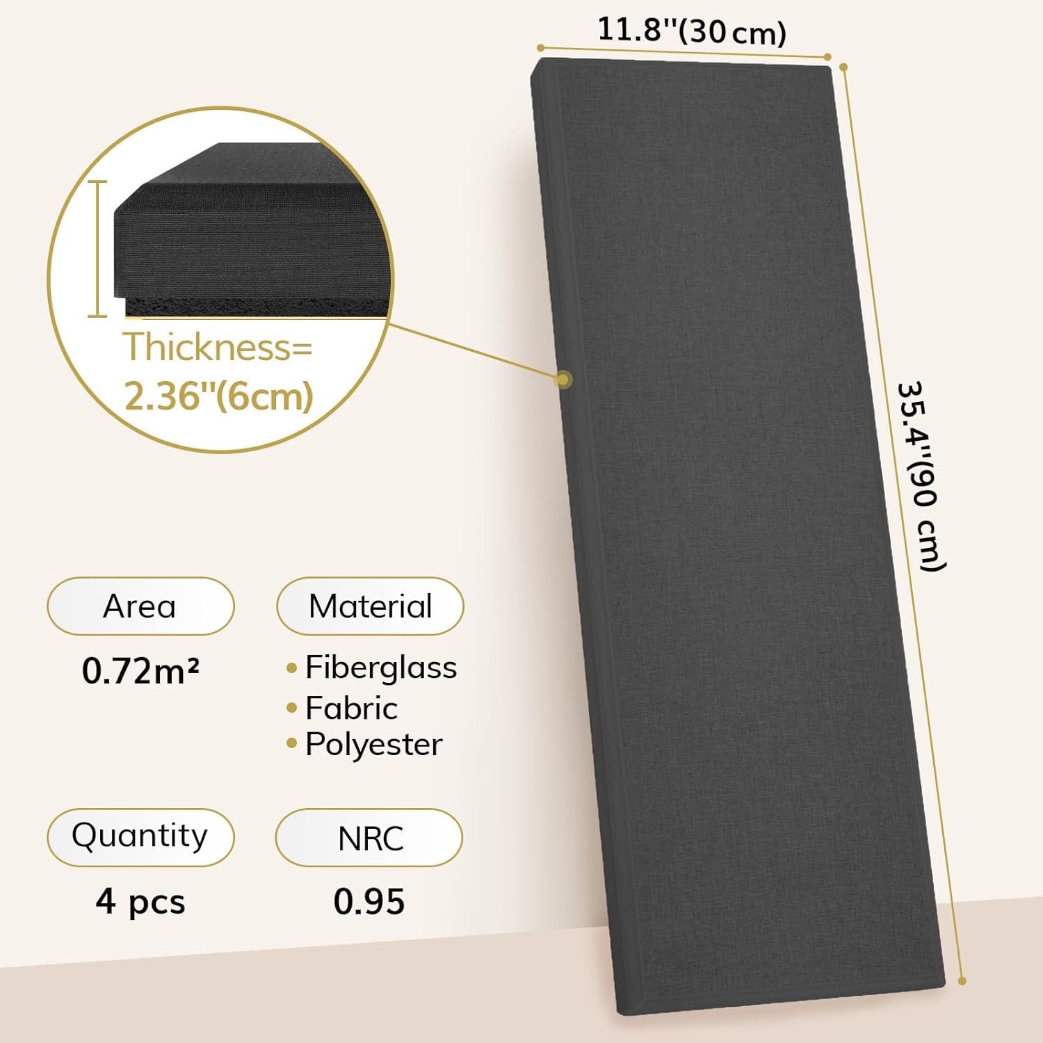 - Exceptional Sound Absorption: Each acoustic panel measures35.4''x11.8'' with a thickness of 2.36”, totaling four panels, boasting an impressive NRC of 0.95. These panels reduce echo, absorb wall noise, and create a clearer, more enjoyable sound environment