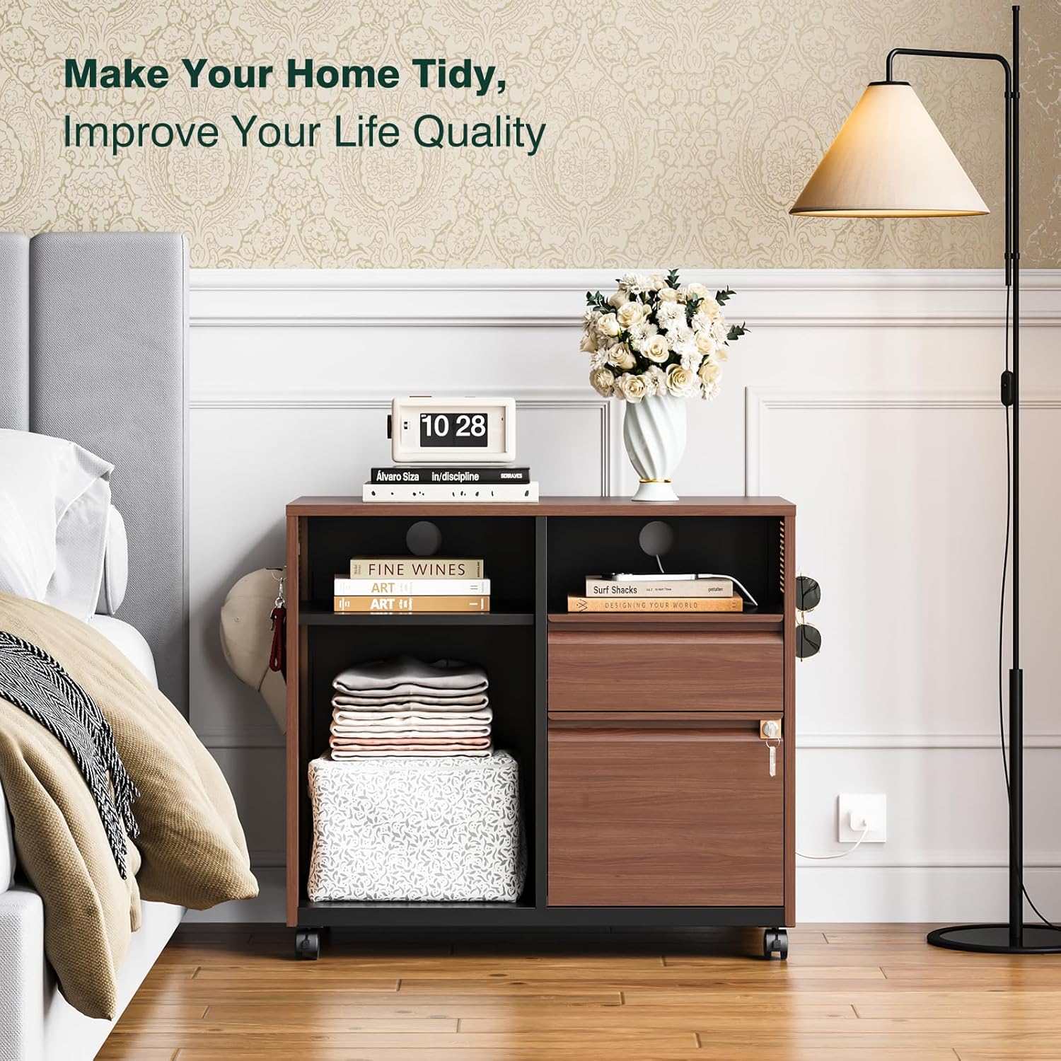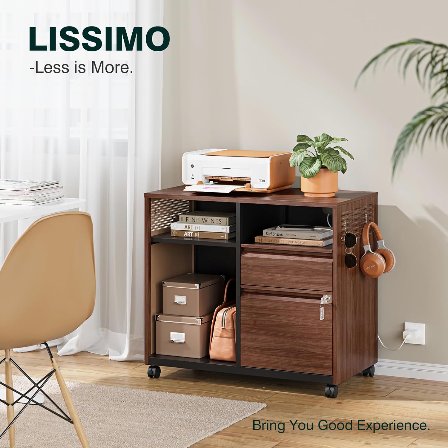 - 【Multifunction File Cabinet】LISSIMO filing cabinet with open storage spaces and file drawers is designed to keep the files,books,printer machine and storage stuff organized.