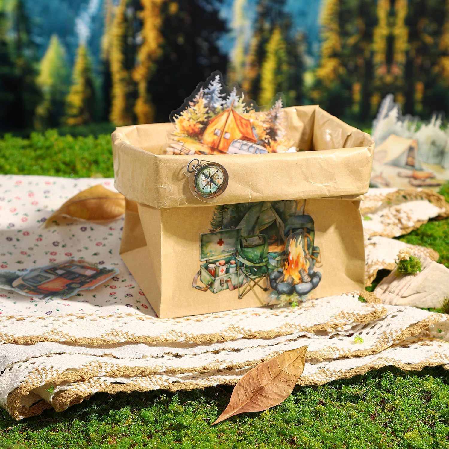 Forest Journey Camping PET Stickers, 120 Pcs Outdoor Adventure Ephemera for Scrapbooking, Journaling, DIY Crafting, and Art Supplies