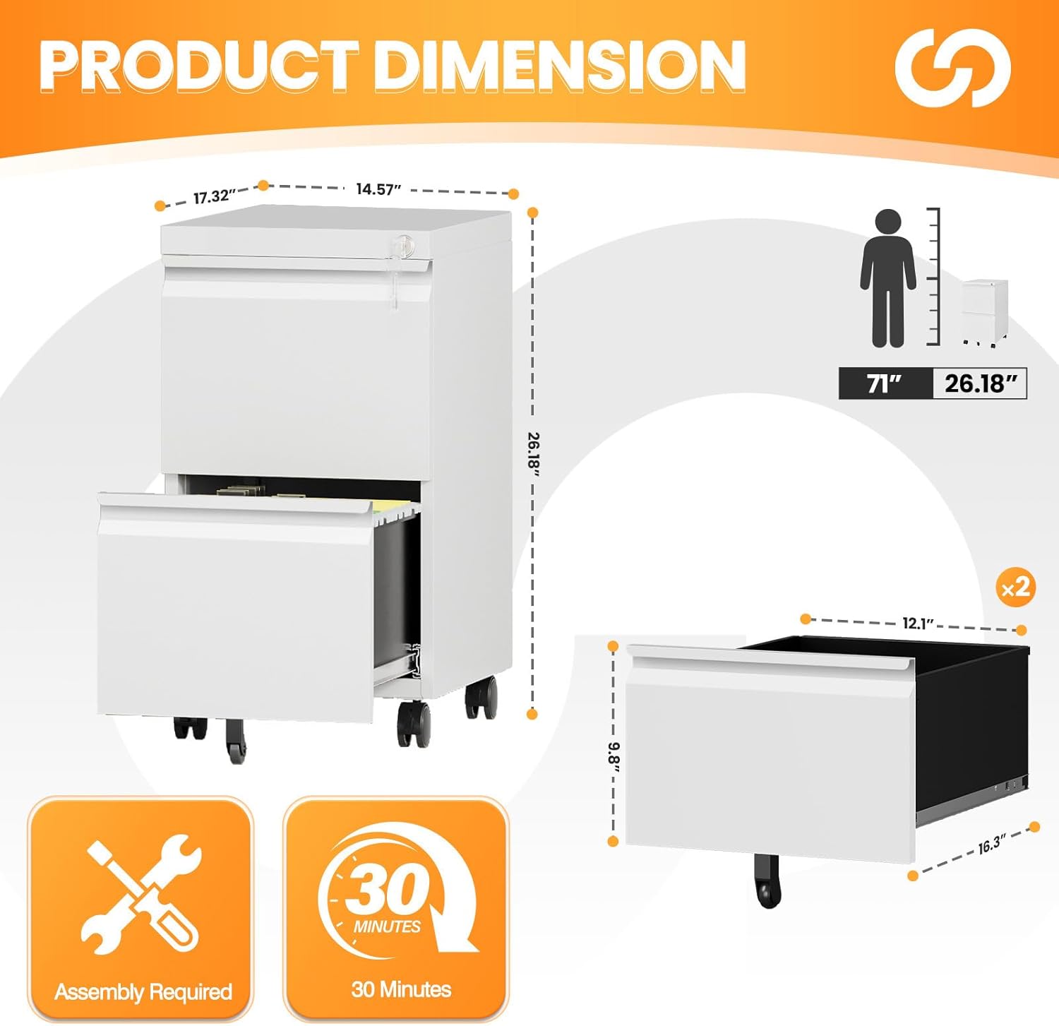 - STYLISH & PRACTICAL: The 2-drawer mobile filing cabinet has a simple and stylish appearance, compact size can be easily placed under the desk, modern style is perfect for office and home use, suitable for daily storage and management of business or personal documents.