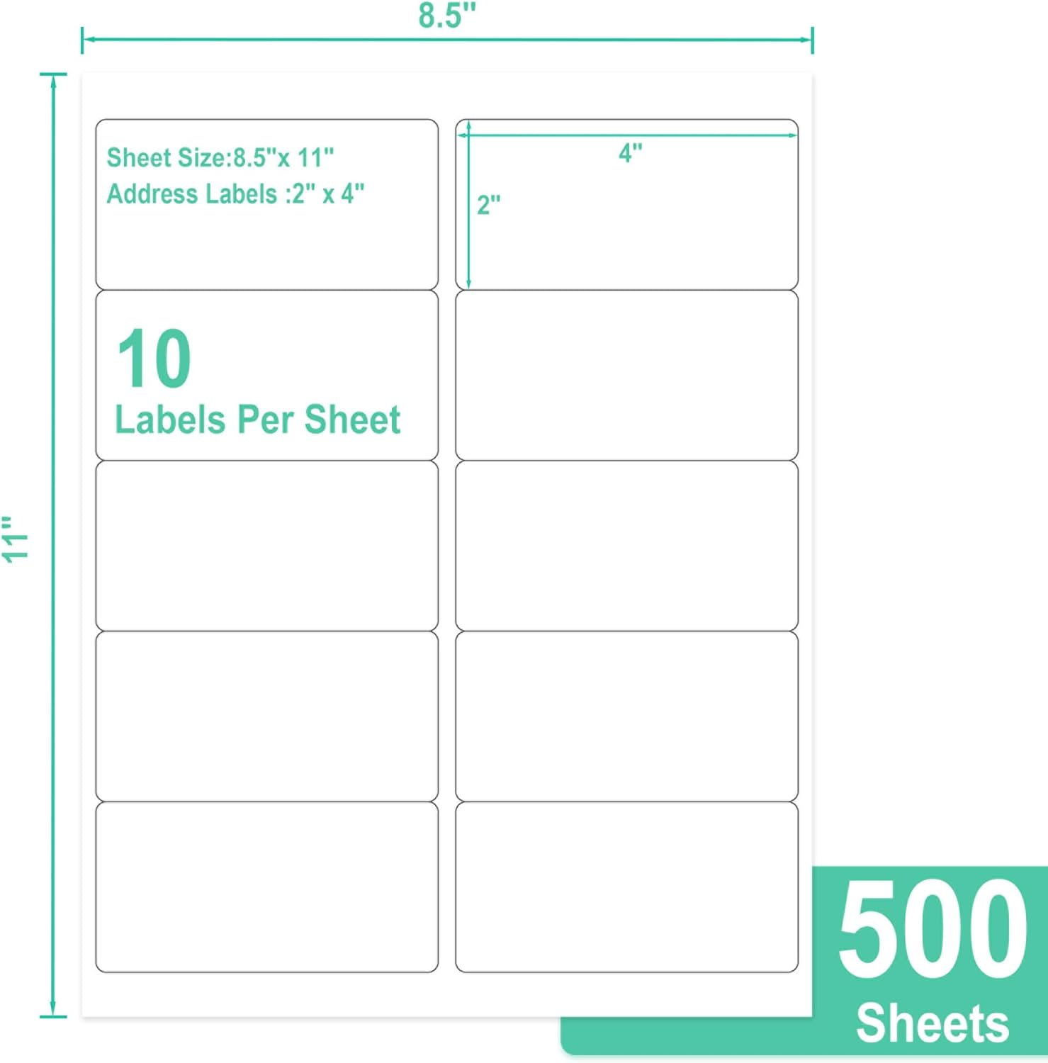 - Package Including: 500 sheets, 5000 labels 2" x 4" label stickers, sheet size: 8-1/2" x 11" , 10 labels per sheet