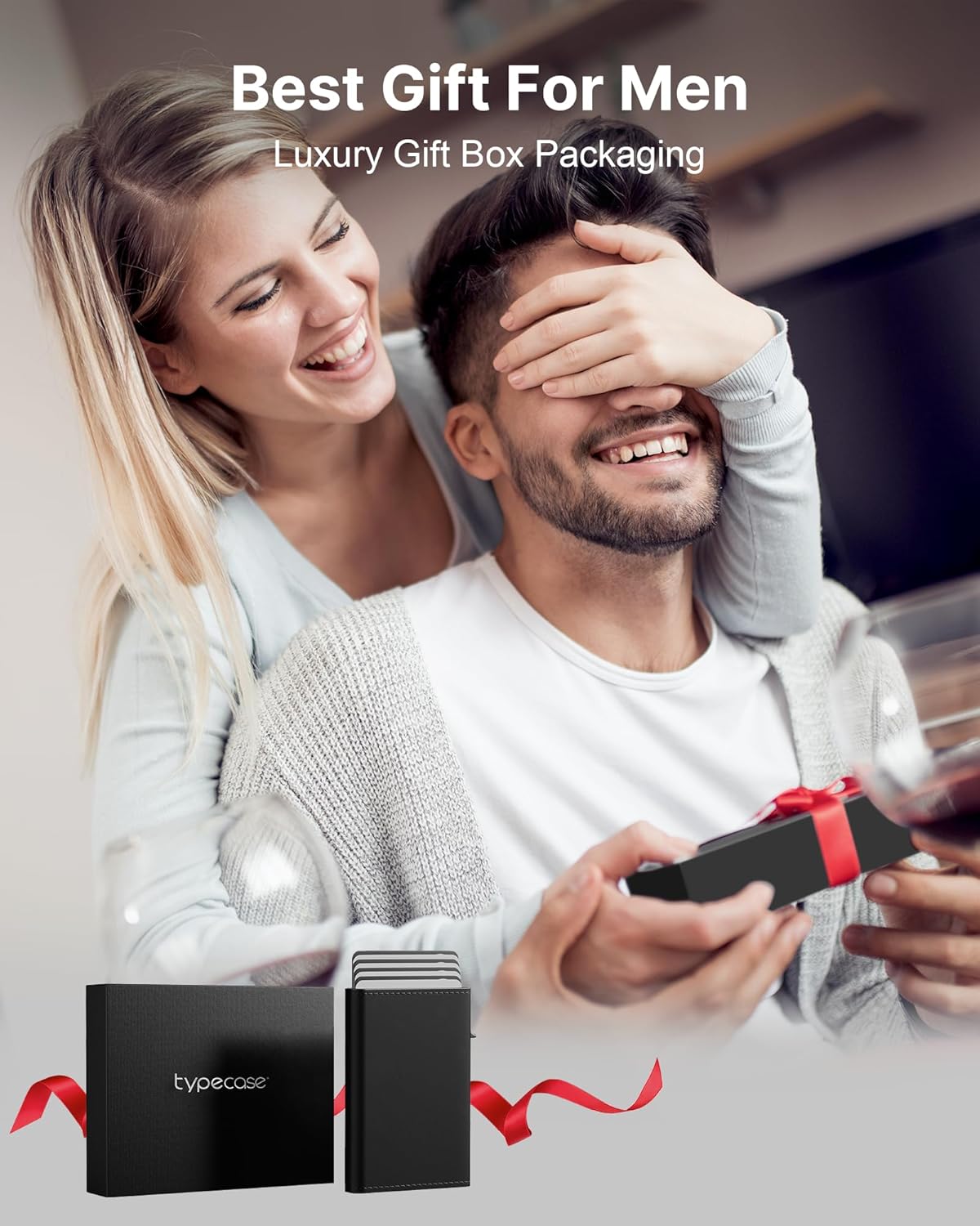 typecase Mens Wallet Card Holder: Pop Up Aluminum Case, Genuine Leather, Smart, RFID Blocking, Slim, Minimalist, Front Pocket - 9-14 Card Capacity | ID Window | Cash Slot (Deep Black)