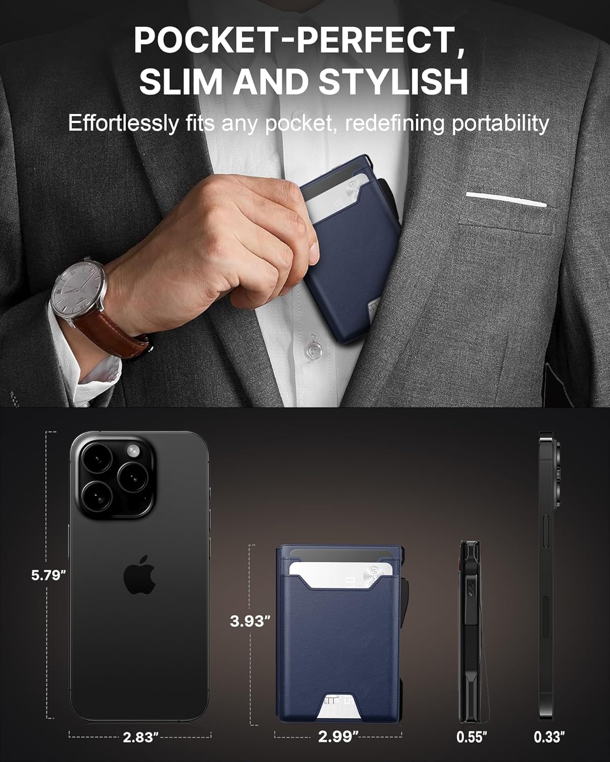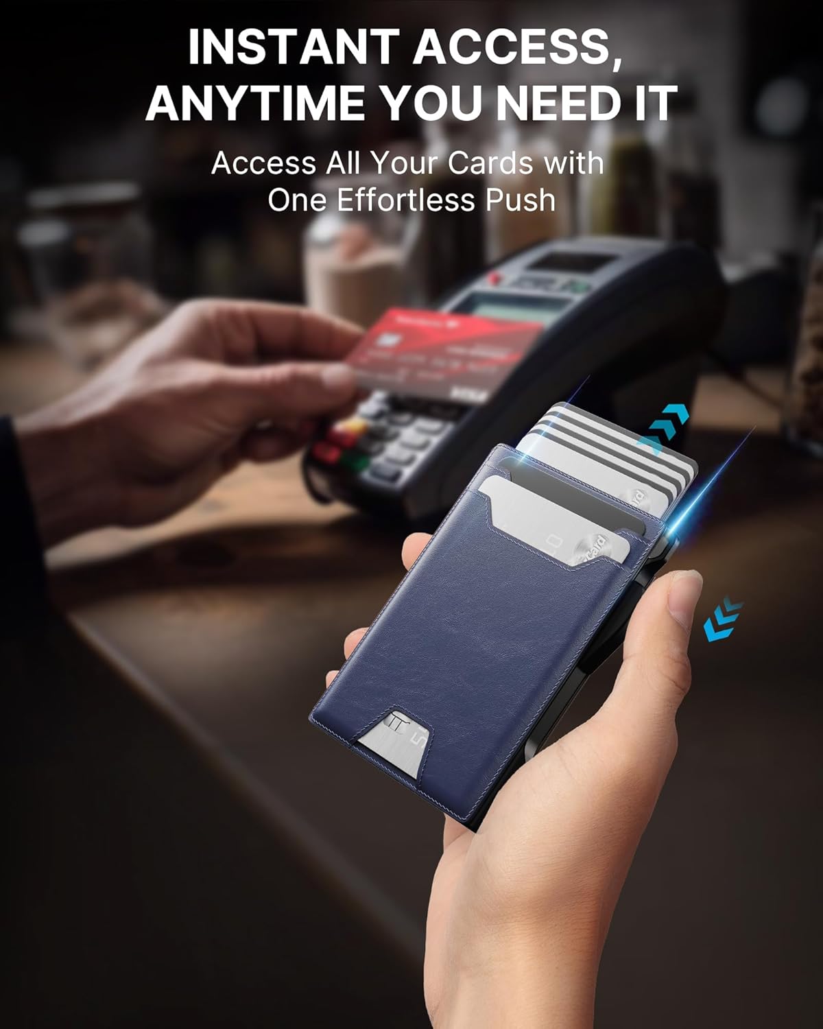 - Quick Card Access: Designed for speed, this wallet's Smart Pop Up mechanism allows you to instantly view and select your cards. The front and back pocket provide 3 quick-release option for your frequently used card, ensuring they're always within reach.