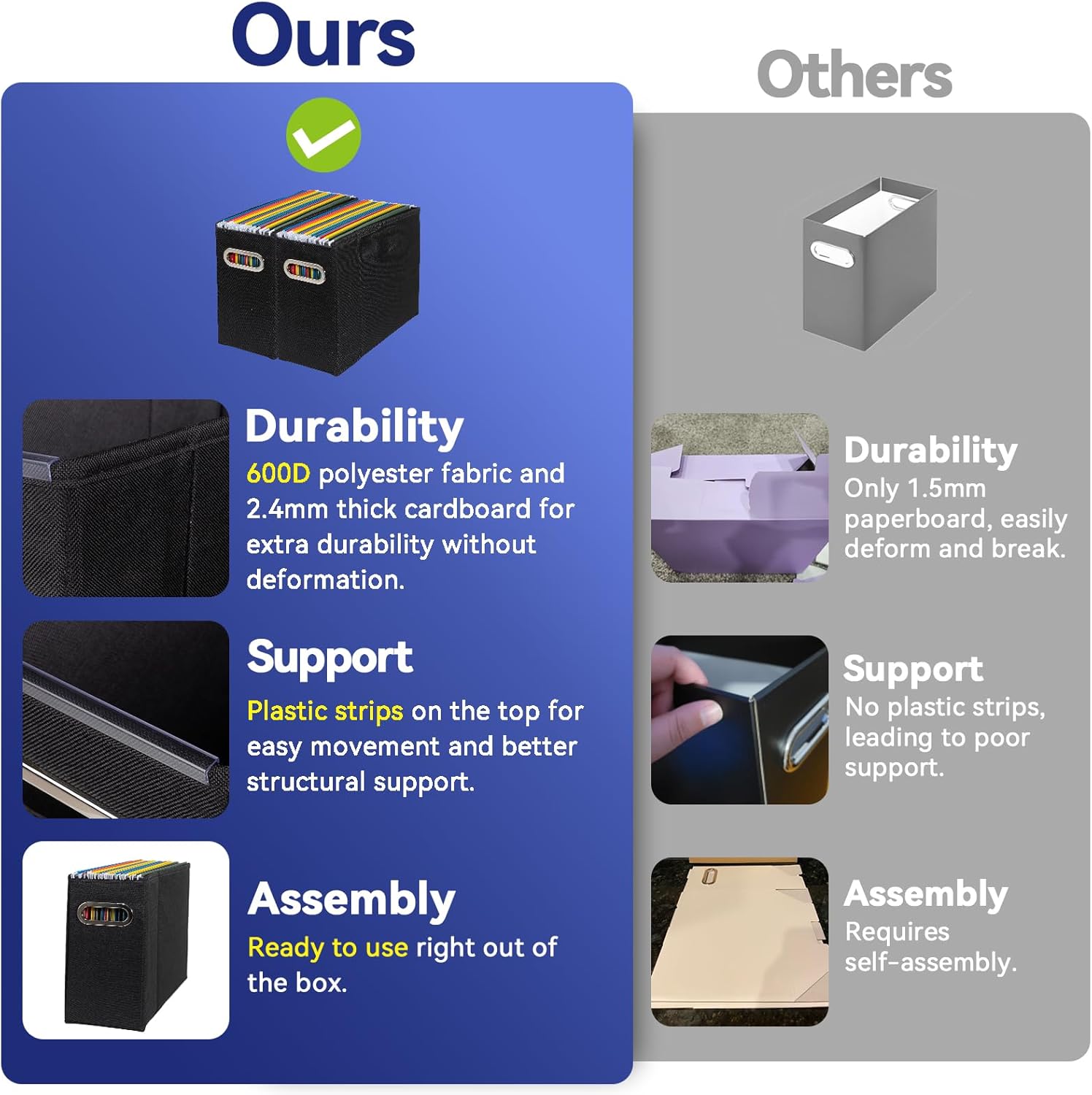 - Easy to Assemble: Simply unfold the organizer, insert the thickened bottom panel, and it's ready to use in just 10 seconds. When not in use, it can be folded flat to save space. The open-top design allows for quick and easy access to your files, improving efficiency