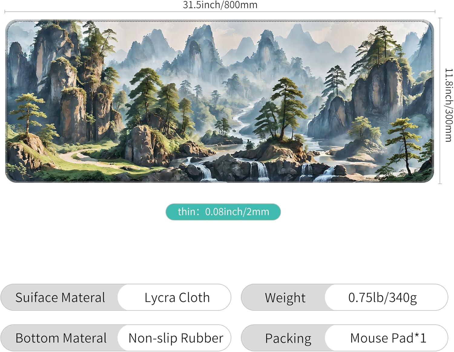- Large Size - 31.5*11.8*0.08 inch(800*300*2mm)makes it provide larger area fits both for keyboard and mouse