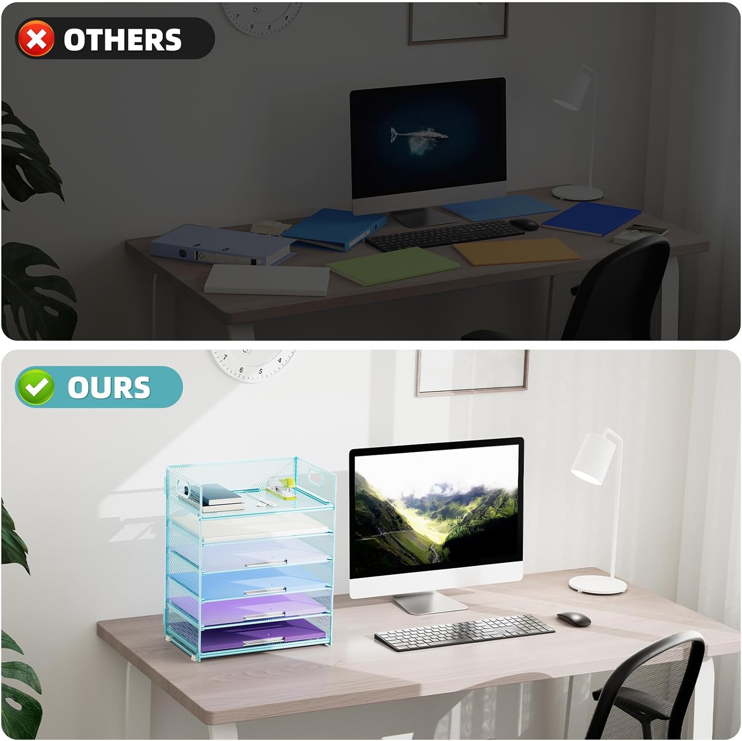 - 【MULTI-PURPOSE ORGANIZER】6-tier layered design and large capacity make the paper organizer become an ideal choice for managing all kinds of letter-size letters, paper, books, bills, etc. Let you quickly identify the contents of each compartment super easy