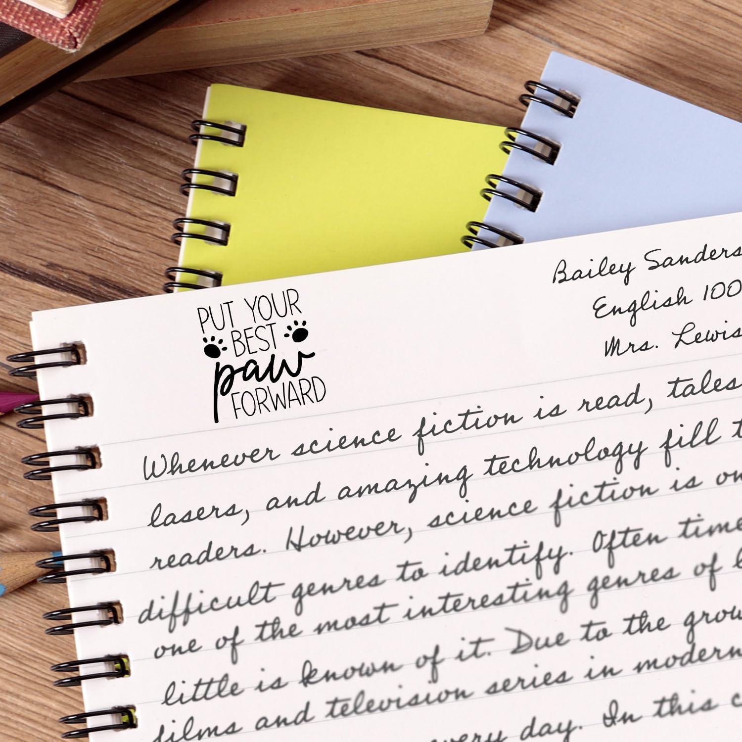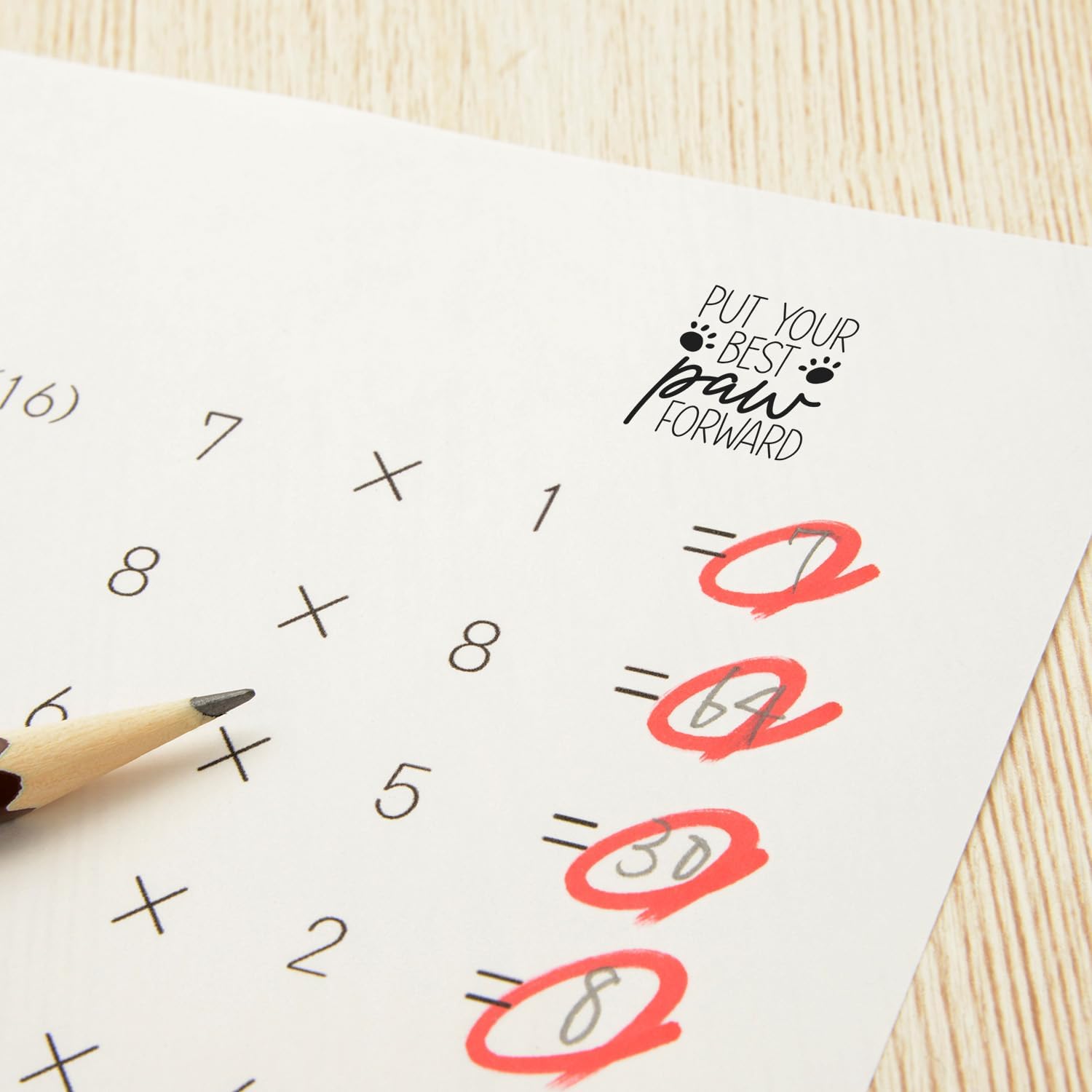 - Great For: Giving your stamp of approval for a nice job done! Stamp incorporates the phrase "Put Your Best Paw Forward" with an adorable paw print illustration. Perfect for any dog or cat lover, vet office, teacher, classroom, daycare, or homeschool.