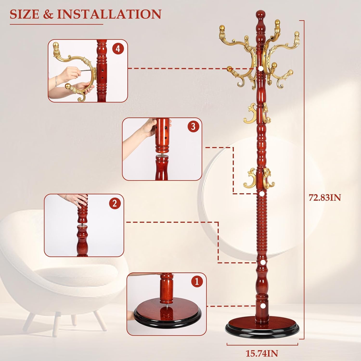 - 【Keep Your Cool】 With numbered parts and easy-to-follow instructions, our solid wood coat stand can be assembled in under 10 minutes, helping keep your home a frustration-free zone without unnecessary hassles.