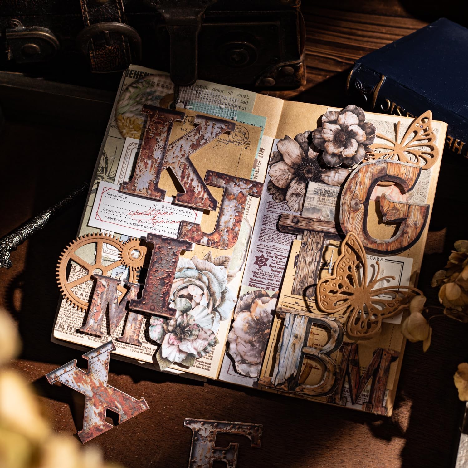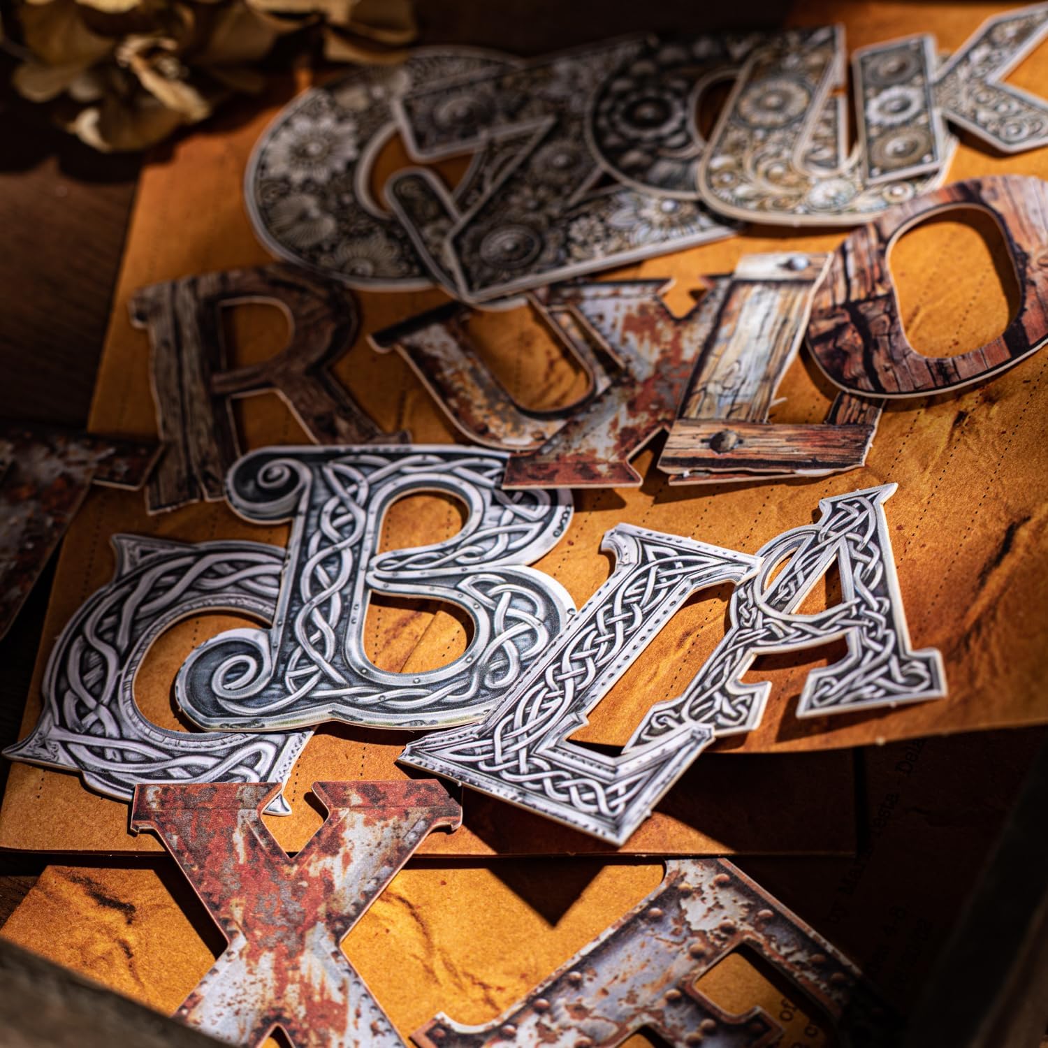 104Pcs Alphabet Hard Card Stickers Set, Vintage Letter Stickers for Scrapbooking, DIY Crafts, Journaling, and Junk Journal Ephemera