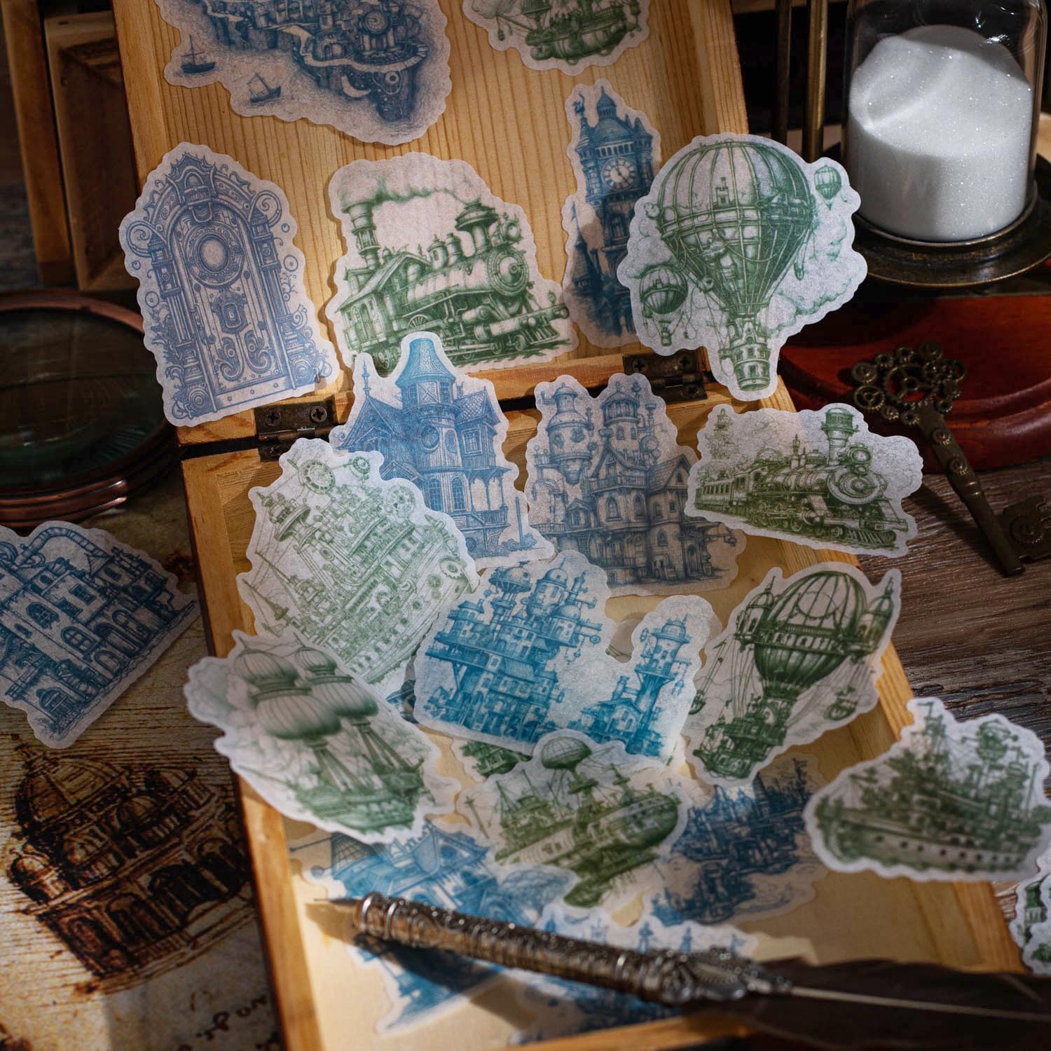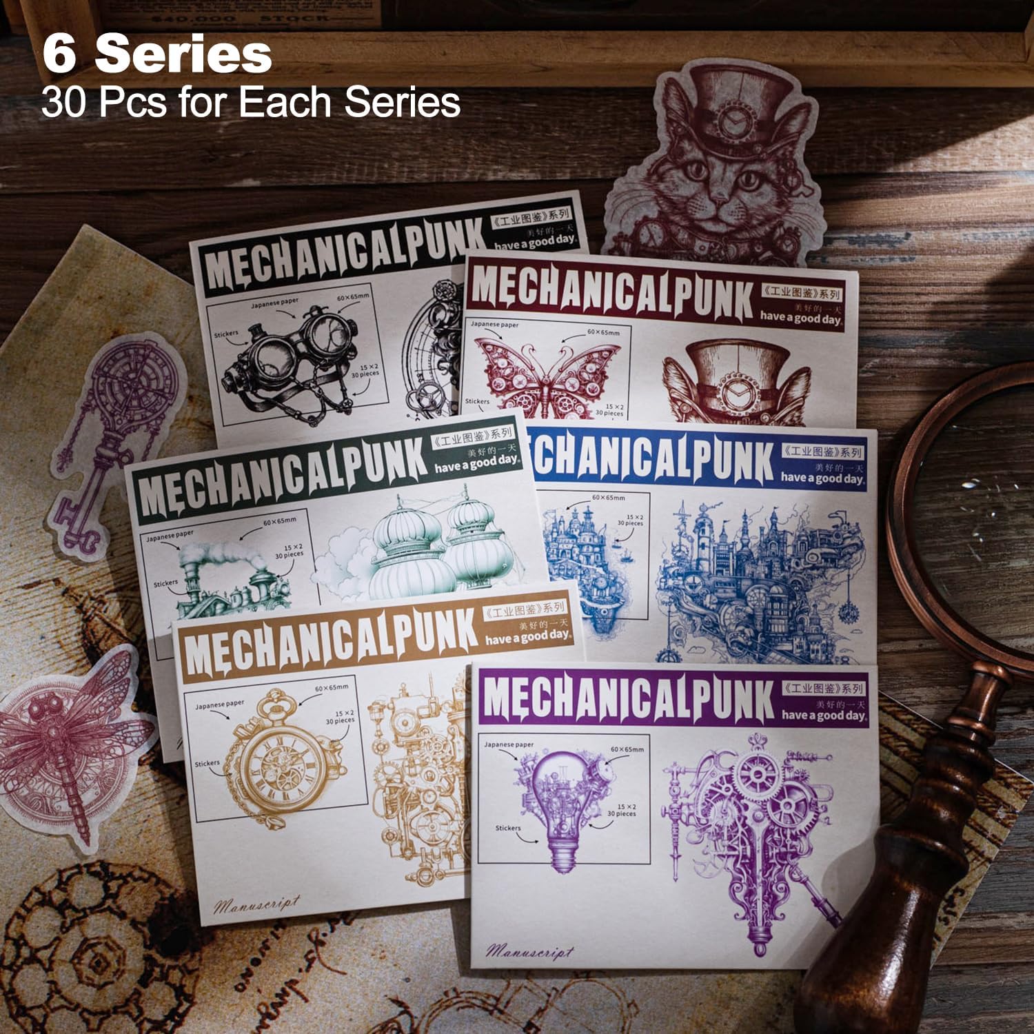 Retro Steampunk Washi Stickers, 180 Pcs Mechanical Ephemera for Scrapbooking, Journaling, DIY Crafts, and Art Supplies