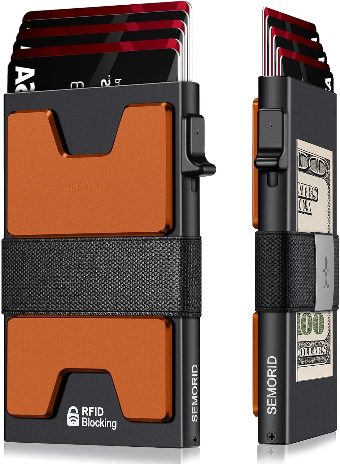 - š³ ULTRA THIN PROFILE (SLIM WALLET FOR MEN): The minimalist tactical wallet is very thin and can be carried comfortably in a pocket. The aluminum cardholder size is 3.9*2.5*0.5in,weight only 2.6oz. And expandable backplate designed for additional storage. Ditch the bulk, less is more.