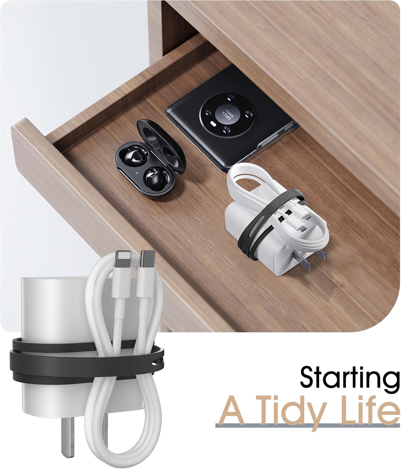 - 【The Latest Anti-lost Design】Are you still worried about messy cables? Ever held your charger and couldn't find the corresponding USB cable? This cable organizer can organize USB cables and matching chargers together, or it can organize two different types of cables at the same time. Fixing it on the cable can avoid loss and is convenient for use at any time