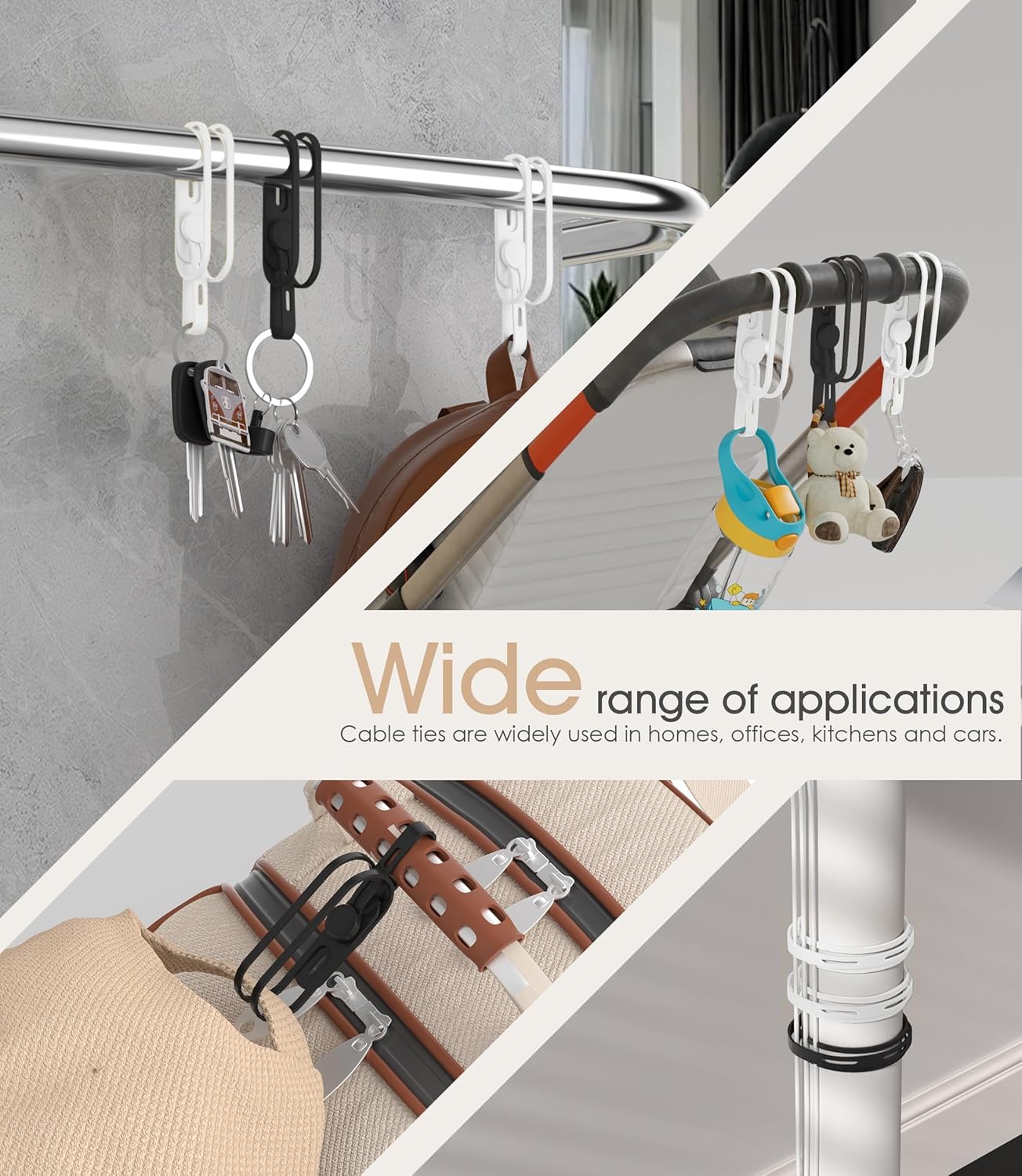 - 【Multifunctional Cable Ties】The design of this double-sided silicone tie with a wide buckle makes the binding more secure. It can not only be used for cable management, but also for storing keys, scissors and other convenient hanging objects at home, and for connecting hats and coats to backpacks when traveling, freeing your hands
