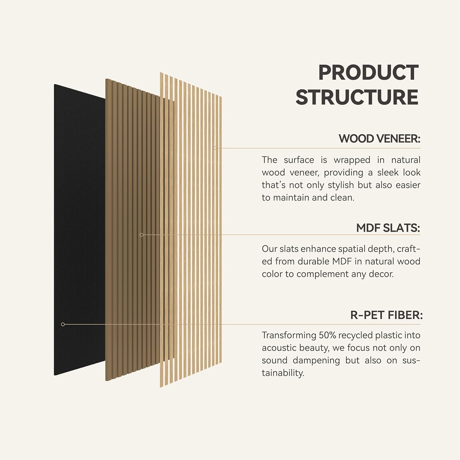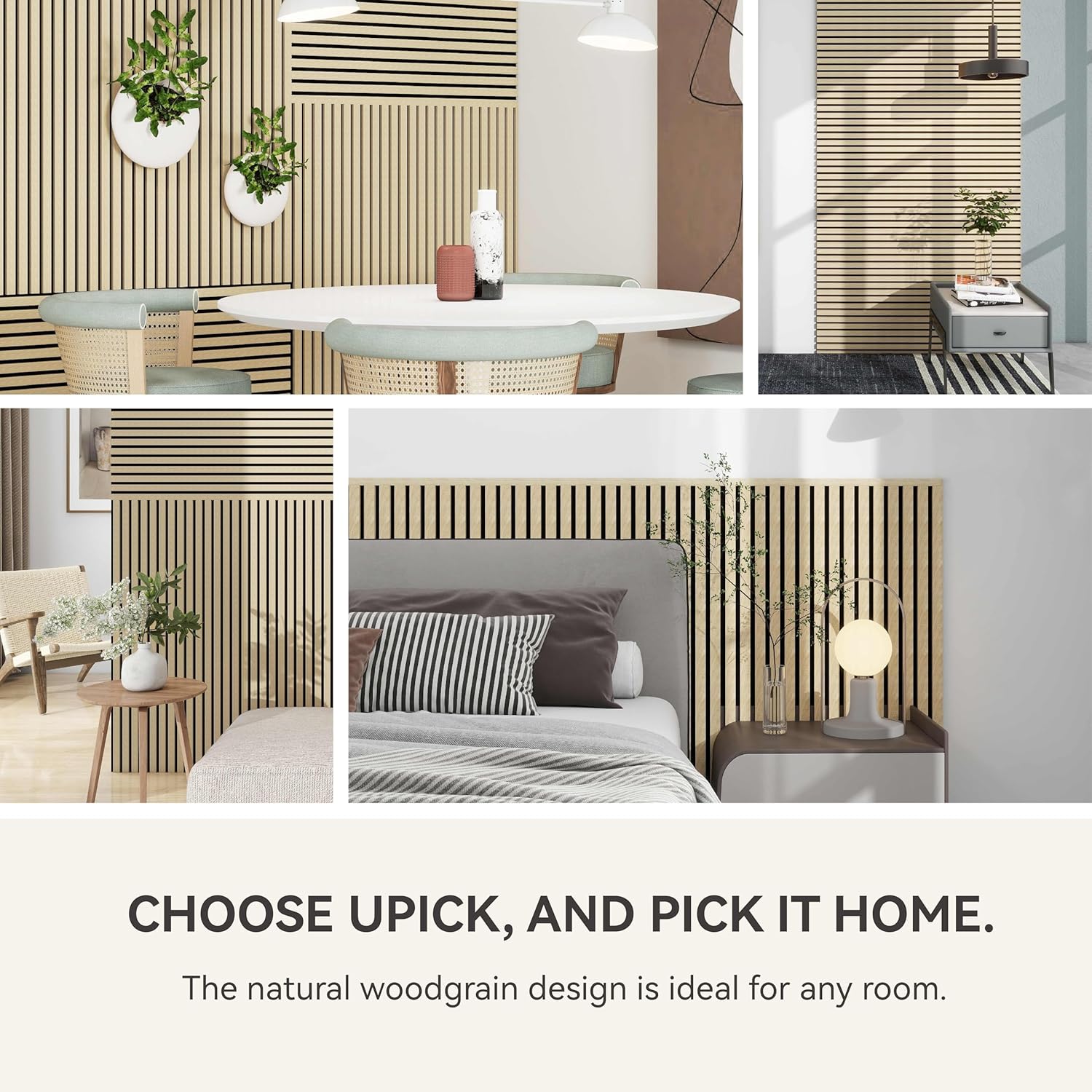 Upick MDF Acoustic Wall Panels Sound Absorbing, 4 Pack 48 x 24 inch Sound Proof Foam Wall Panels & Wood Slat Wall Panels for Interior Wall Decor, Oak
